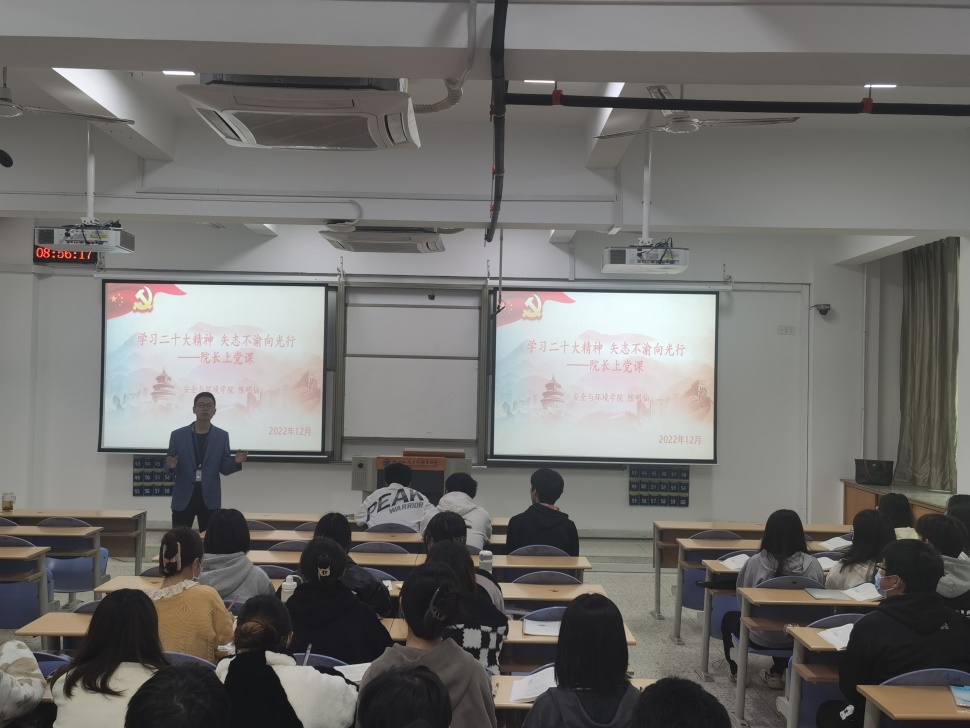 為更好將“三會一課”制度落實到位,堅持開展黨員黨性教育、優(yōu)良傳統(tǒng)作風(fēng)教育,安全與環(huán)境學(xué)院院長陳明仙于2022年12月8日,給學(xué)院黨員學(xué)生、二支部黨員上了一堂生動的以“學(xué)習(xí)黨的二十大精神 矢志不渝向光行”為主題的黨課。