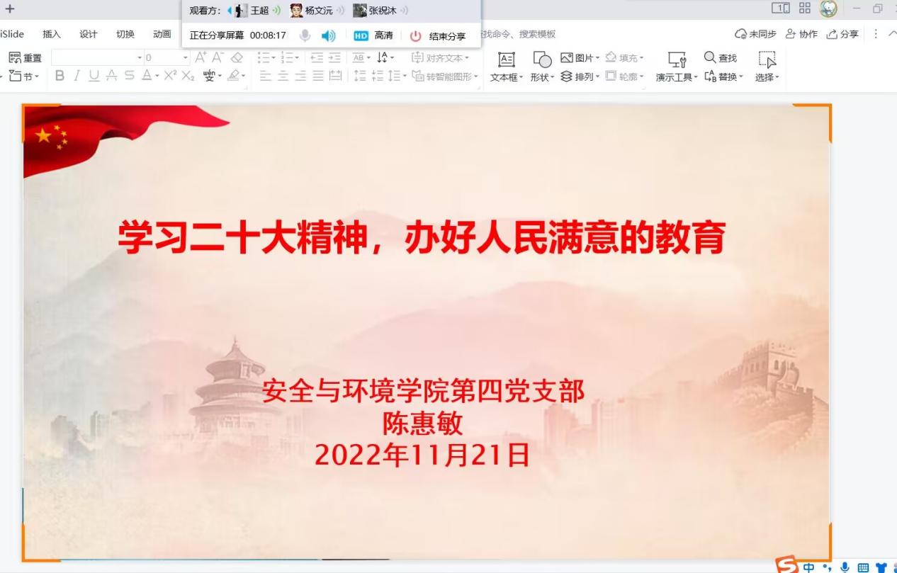 安全與環(huán)境學(xué)院第四黨支部開(kāi)展黨的二十大精神宣講
