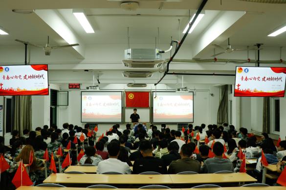 學(xué)院團(tuán)委學(xué)生兼職副書記陳智鵬以“青春心向黨 建功新時(shí)代”為主題,帶著同學(xué)們回顧了共青團(tuán)的百年奮斗征程,汲取其寶貴經(jīng)驗(yàn),提出了四個(gè)希望和新的要求,希望同學(xué)們樹牢“四個(gè)意識”,堅(jiān)定“四個(gè)自信”,堅(jiān)決做到“兩個(gè)維護(hù)”,以黨的宗旨為指引,努力成長為有智慧、有理想、敢擔(dān)當(dāng)、能吃苦、肯奮斗的新時(shí)代好青年。