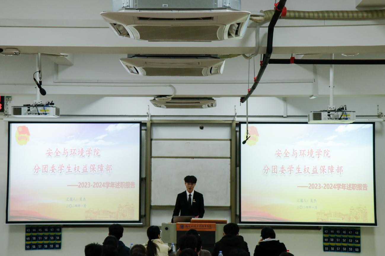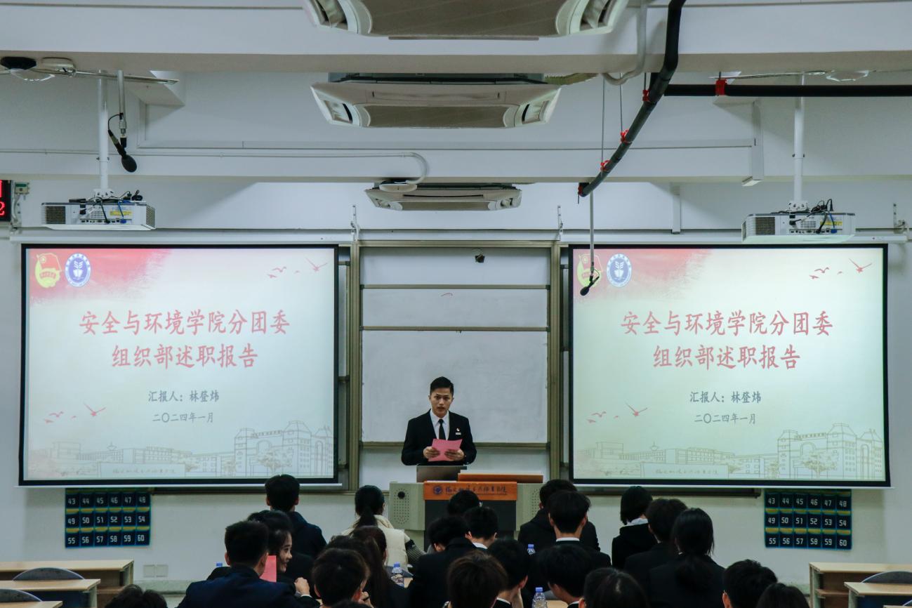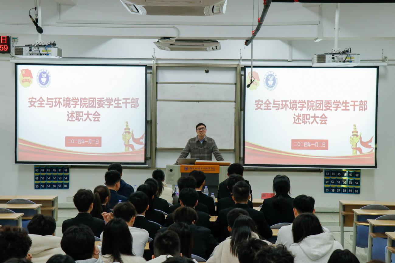為深入學習貫徹習近平總書記關于青年工作的重要思想,進一步推動學生組織建設,提高學生干部綜合素質,總結本學年工作實效,規(guī)劃下一年度工作,2024年1月2日安全與環(huán)境學院在創(chuàng)新樓201教室組織召開團委學生干部述職大會。安全與環(huán)境學院團委書記彭志允、團委組織委員張曉珊、團委宣傳委員李花、輔導員牟鵬飛、輔導員何瀚深蒞臨本次會議。