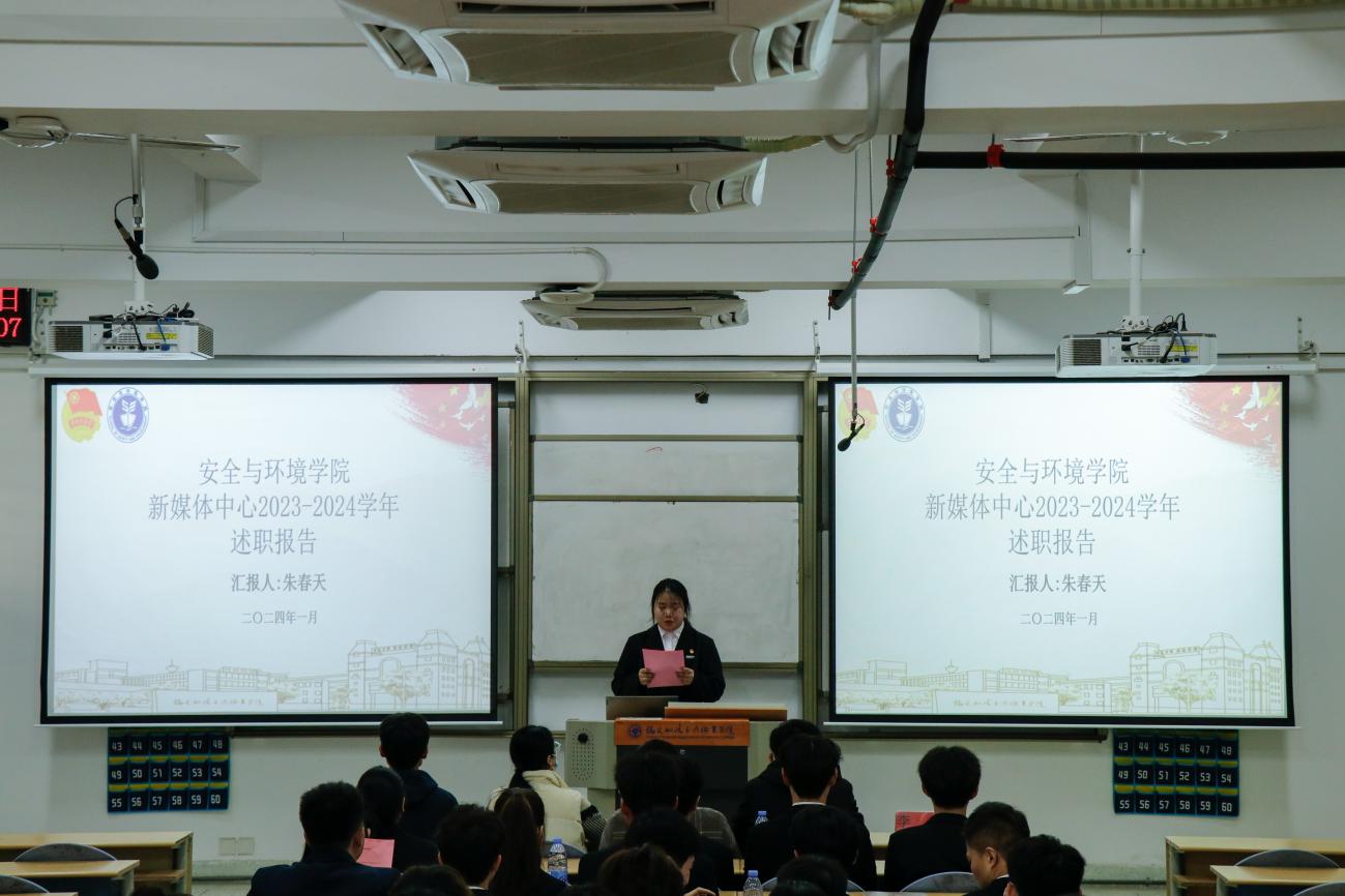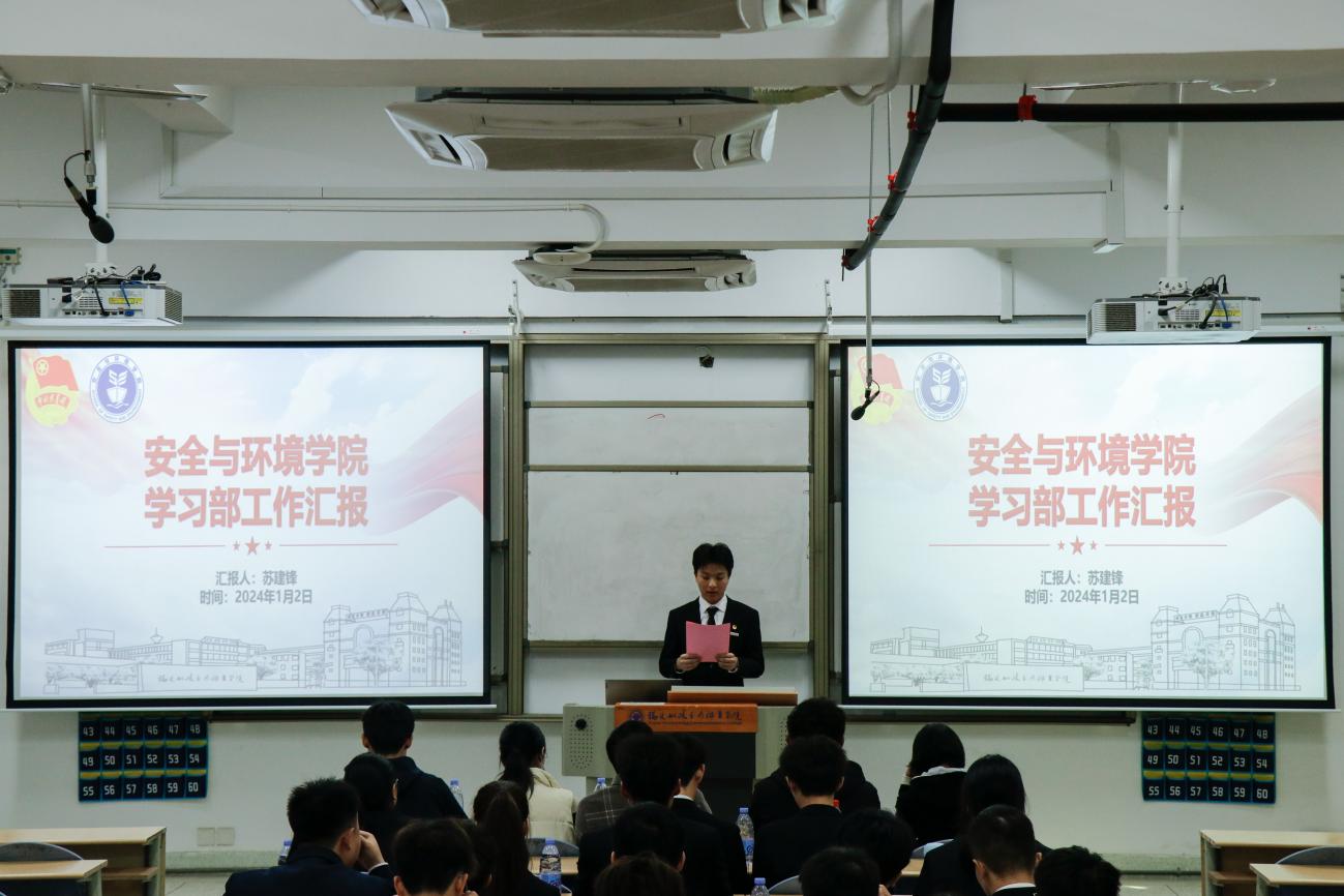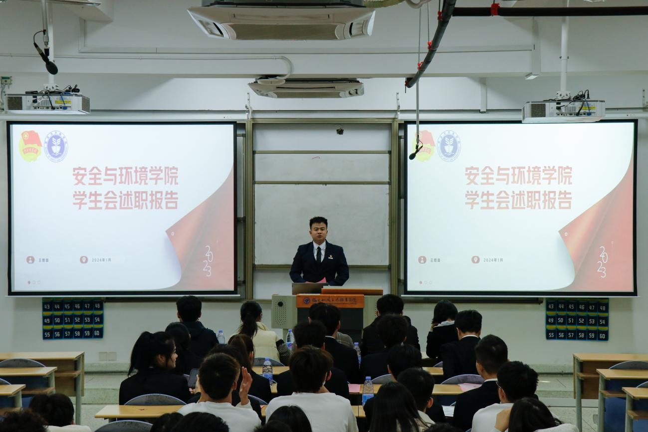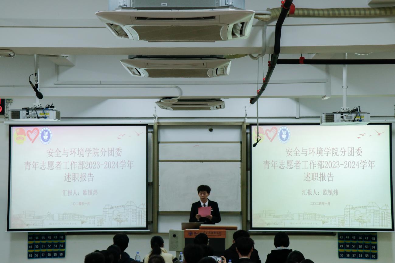 為深入學習貫徹習近平總書記關于青年工作的重要思想,進一步推動學生組織建設,提高學生干部綜合素質,總結本學年工作實效,規(guī)劃下一年度工作,2024年1月2日安全與環(huán)境學院在創(chuàng)新樓201教室組織召開團委學生干部述職大會。安全與環(huán)境學院團委書記彭志允、團委組織委員張曉珊、團委宣傳委員李花、輔導員牟鵬飛、輔導員何瀚深蒞臨本次會議。