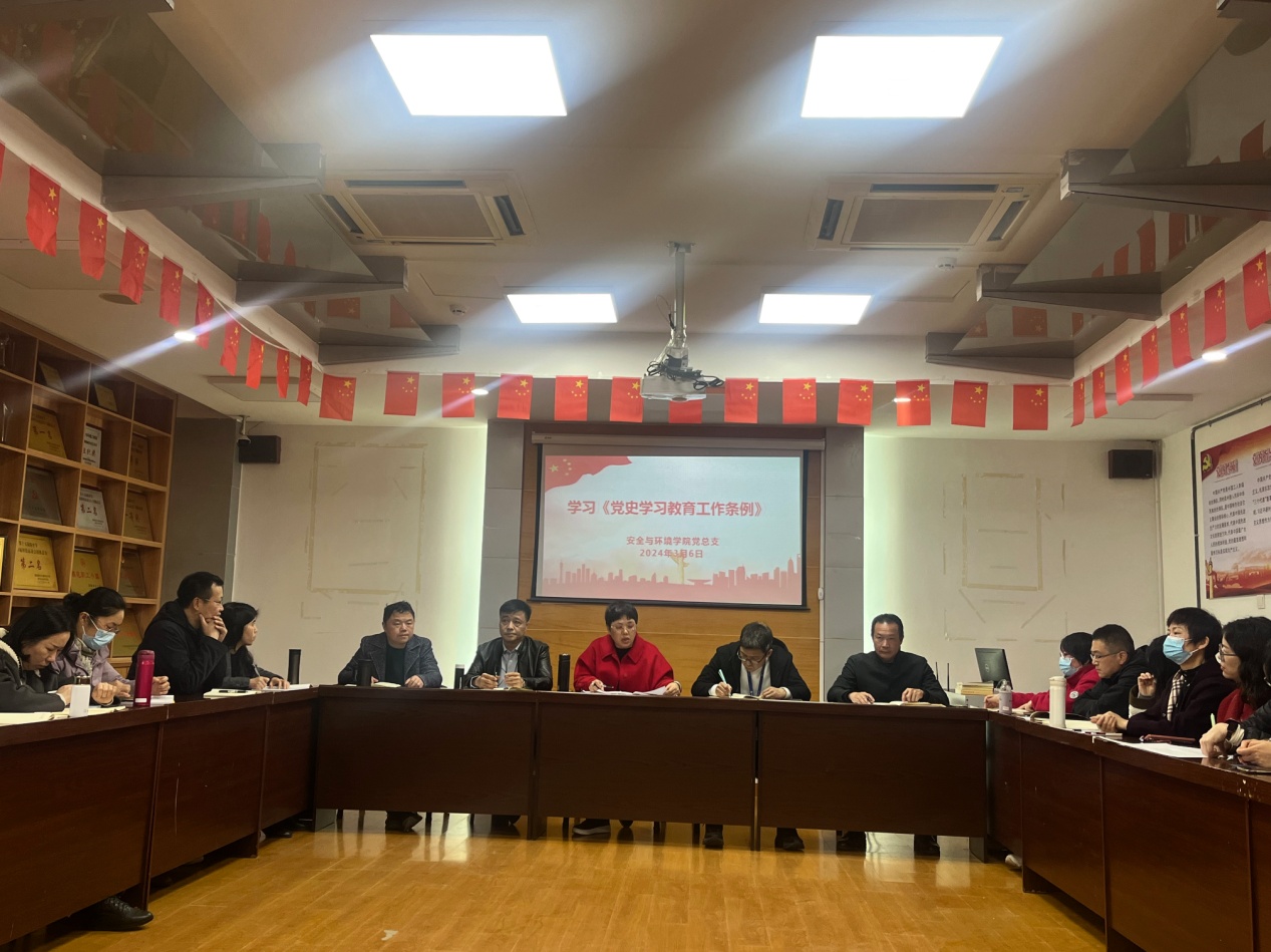 為扎實(shí)做好《黨史學(xué)習(xí)教育工作條例》(以下簡(jiǎn)稱(chēng)《條例》)的學(xué)習(xí)宣傳貫徹工作,3月6日,安全與環(huán)境學(xué)院黨總支召開(kāi)黨員大會(huì),組織全體黨員教師集中學(xué)習(xí)《黨史學(xué)習(xí)教育工作條例》,黨總支書(shū)記鄭雪琴教授主持會(huì)議。