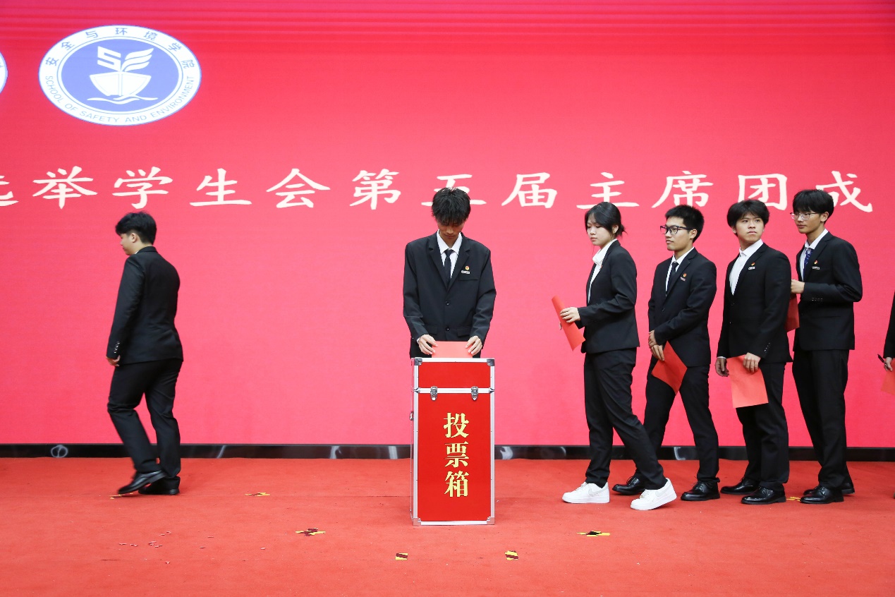 隨著國歌的奏響,此次參與會議的成員們一齊肅立,福建船政交通職業(yè)學院安全與環(huán)境學院第五次學生代表大會在激昂的國歌聲中正式拉開帷幕。大會的議程依次為安全與環(huán)境學院團委書記彭志允致辭,福建船政交通職業(yè)學院學生會主席團成員汪煜茹致辭,安全與環(huán)境學院第一黨支部書記何瀚深致辭,王煜鑫同學代表安全與環(huán)境學院第四屆學生委員會作工作報告,審議并通過《福建船政交通職業(yè)學院安全與環(huán)境學院學生會章程》(修訂案),選舉產(chǎn)生福建船政交通職業(yè)學院安全與環(huán)境學院第五屆學生會主席團成員,總監(jiān)票人分團委書記彭志允宣布選舉結(jié)果:經(jīng)安全與環(huán)境學院第五屆第一次委員會全體會議討論選舉安全與環(huán)境學院學生會主席團成員由黃振南、邱建平、劉澤安同學擔任,安全與環(huán)境學院團委副書記徐林悅慰致閉幕詞。