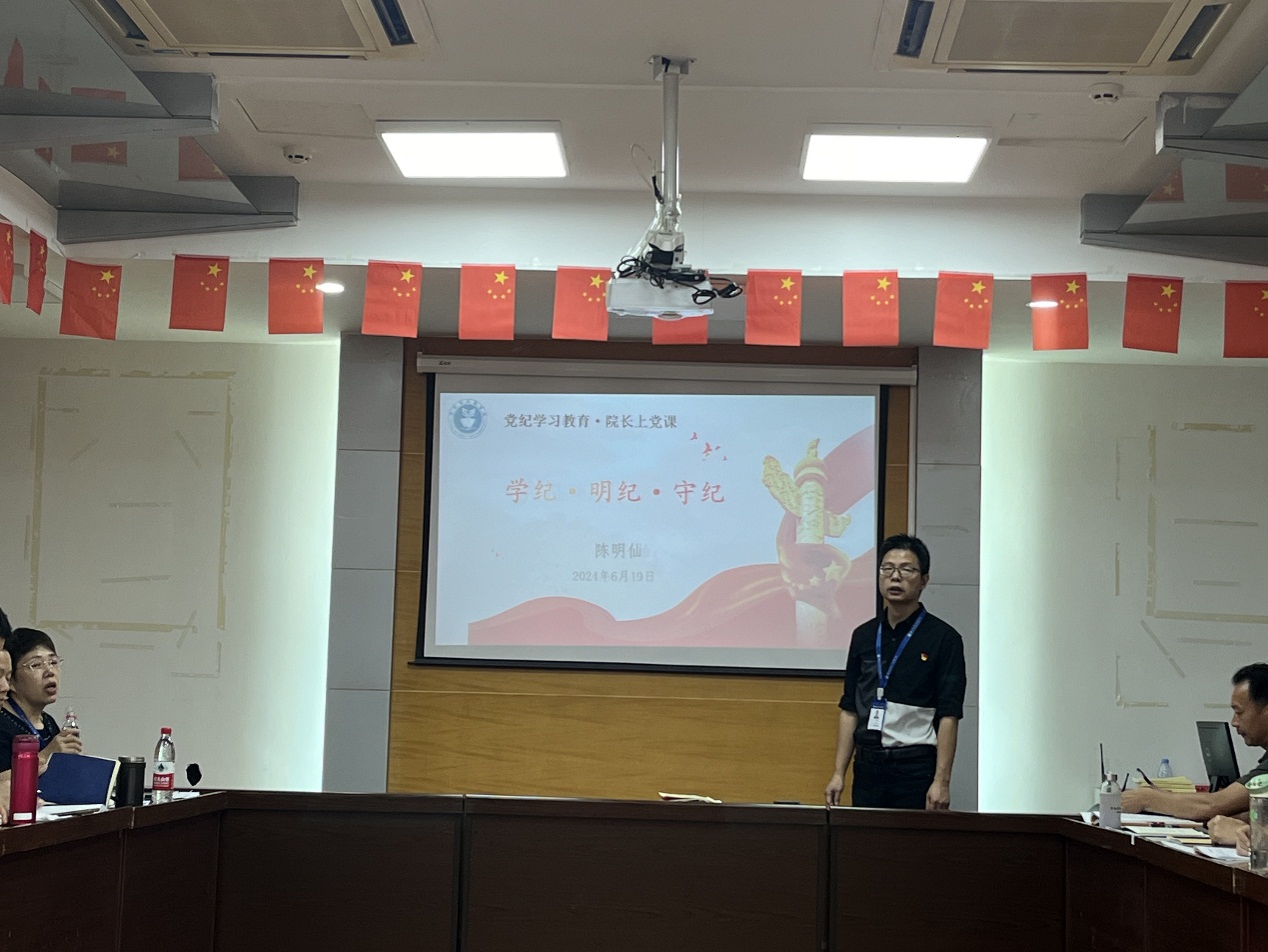 最后,陳明仙院長以《學(xué)紀(jì)、明紀(jì)、守紀(jì)》為題講授黨紀(jì)學(xué)習(xí)教育專題黨課。陳明仙院長強(qiáng)調(diào):我們作為教育工作者承擔(dān)著立德樹人、培養(yǎng)社會(huì)主義建設(shè)者和接班人的重任,平時(shí)要結(jié)合教育教學(xué)業(yè)務(wù)、黨組織和黨員干部的實(shí)際,真正做到內(nèi)化學(xué)紀(jì)、師德明紀(jì)、規(guī)矩守紀(jì),在推動(dòng)教育高質(zhì)量發(fā)展中要發(fā)揮模范帶頭作用。