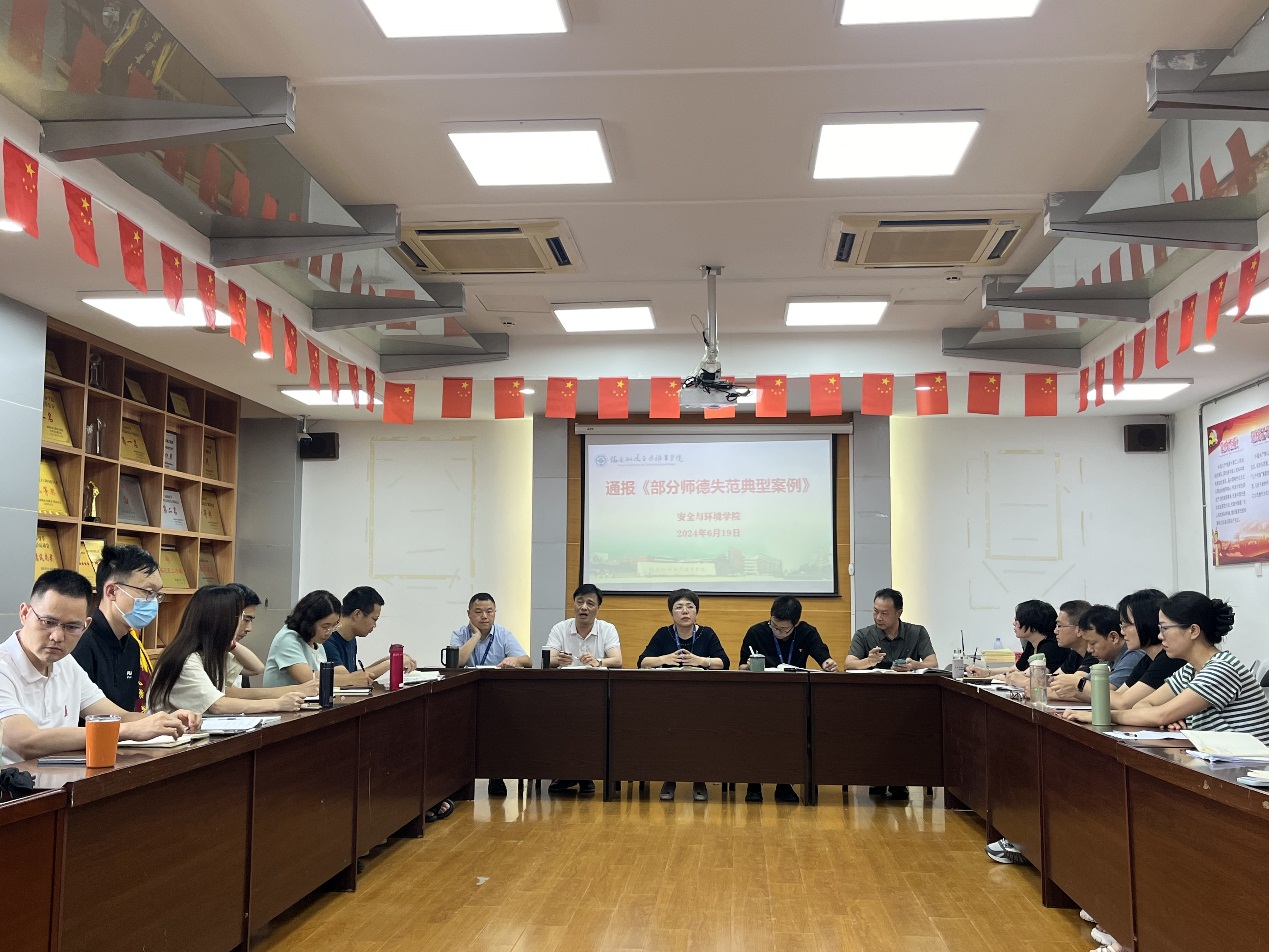 為深入貫徹落實(shí)黨的二十大精神,加強(qiáng)師德師風(fēng)建設(shè),嚴(yán)明底線意識,規(guī)范教師職業(yè)行為,營造風(fēng)清氣正的育人環(huán)境,6月19日下午,安全與環(huán)境學(xué)院召開黨紀(jì)學(xué)習(xí)教育暨師德師風(fēng)專題警示教育會(huì)。會(huì)議由黨總支書記鄭雪琴同志主持,學(xué)院全體教師參加。