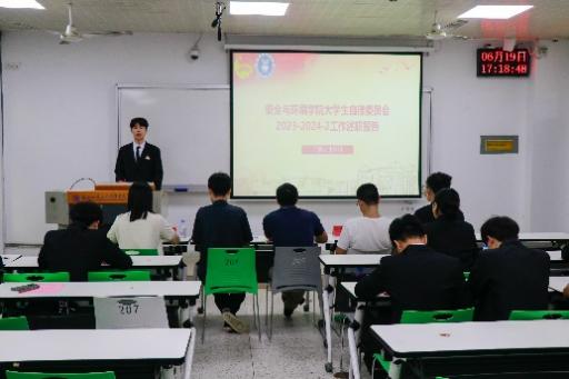 為進(jìn)一步落實共《關(guān)于推動高校學(xué)生會深化改革的若干意見》、《深化學(xué)校共青團(tuán)改革的若干措施》等文件精神,推動學(xué)院學(xué)生干部隊伍的建設(shè),6月19日下午,2023-2024學(xué)年安全與環(huán)境學(xué)院學(xué)生部門述職大會于創(chuàng)新樓208教室召開。學(xué)院團(tuán)委書記彭志允、團(tuán)委副書記徐林悅慰、團(tuán)委組織委員張曉珊、學(xué)院第一黨支部書記何瀚深、輔導(dǎo)員牟鵬飛蒞臨參加本次述職大會。