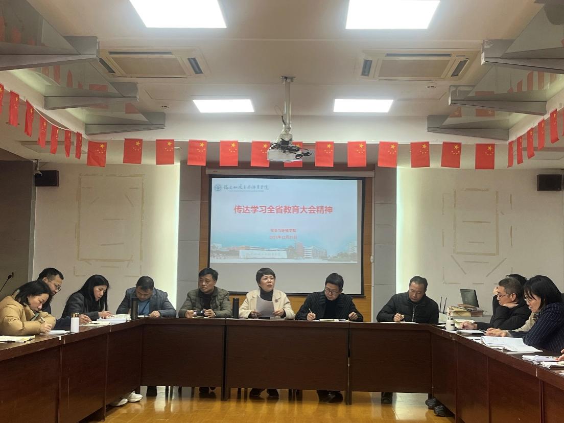 2024年12月25日,安全與環(huán)境學(xué)院組織全體教職工深入學(xué)習(xí)貫徹全省教育大會精神。