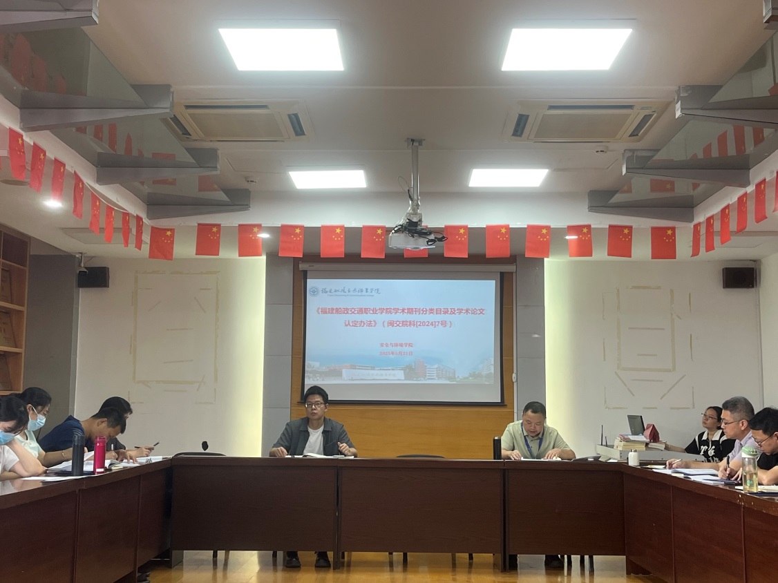 2025年5月21日下午,安全與環(huán)境學(xué)院在創(chuàng)新樓909會議室召開全院教師大會,專題學(xué)習(xí)學(xué)校科技處最新發(fā)布的五項科研管理制度文件,包括《福建船政交通職業(yè)學(xué)院科研計劃項目經(jīng)費管理辦法》、《福建船政交通職業(yè)學(xué)院學(xué)術(shù)期刊分類目錄及學(xué)術(shù)論文認(rèn)定辦法》、《福建船政交通職業(yè)學(xué)院大型儀器設(shè)備購置可行性論證管理辦法(試行)福建船政交通職業(yè)學(xué)院大型儀器設(shè)備開放共享管理辦法(試行)》、《福建船政交通職業(yè)學(xué)院科研項目級別與項目負(fù)責(zé)人認(rèn)定辦法》和《福建船政交通職業(yè)學(xué)院科研項目經(jīng)費使用“包干制”管理辦法(試行)》。會議由學(xué)院院長陳明仙主持,全體教師參加了會議。