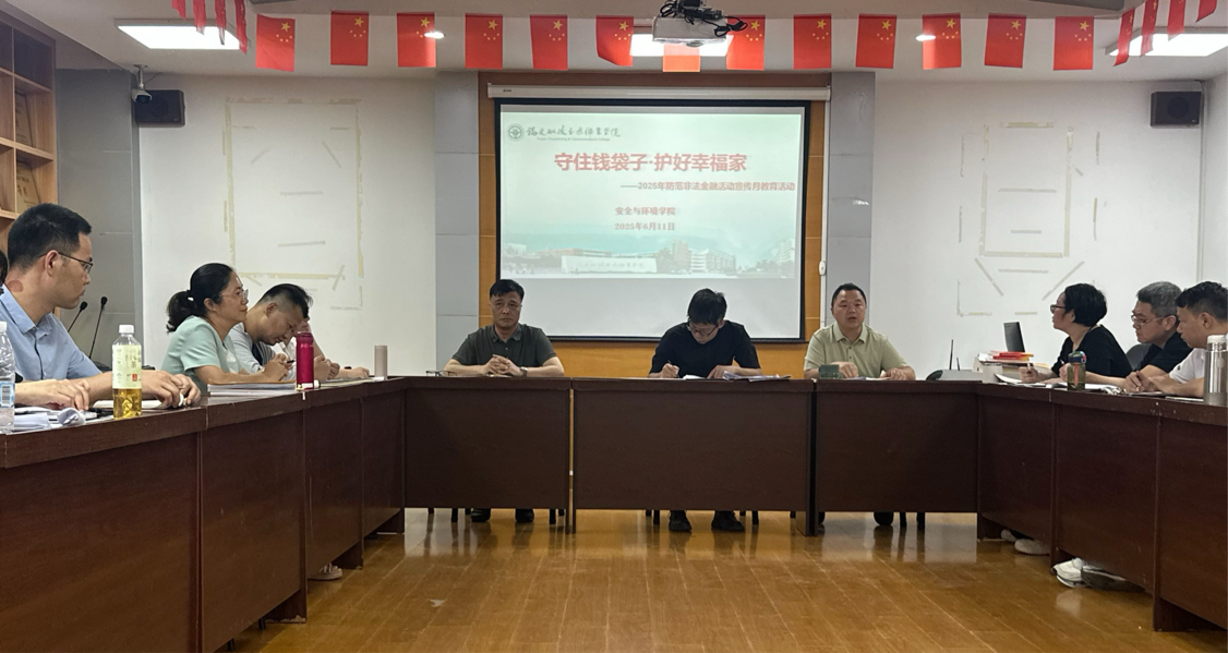 為做好2025年防范非法金融活動(dòng)宣傳月活動(dòng),強(qiáng)化宣傳,增強(qiáng)我院教師對(duì)非法集資風(fēng)險(xiǎn)防范意識(shí),611日下午,安全與環(huán)境學(xué)院黨總支召開“守住錢袋子,護(hù)好幸福家”工作會(huì)議,集體學(xué)習(xí)《防范網(wǎng)絡(luò)詐騙》、《防范電信詐騙》、《防范貸款詐騙》和《防范賭博詐騙》,以加強(qiáng)金融知識(shí)的普及、提高其鑒別和范非法金融的能力,遠(yuǎn)離非法金融,努力營(yíng)造良好的校園文化環(huán)境,安全與環(huán)境學(xué)院黨總支全體黨員參加會(huì)議,黨總支副書記、學(xué)院院長(zhǎng)陳明仙同志主持會(huì)議。