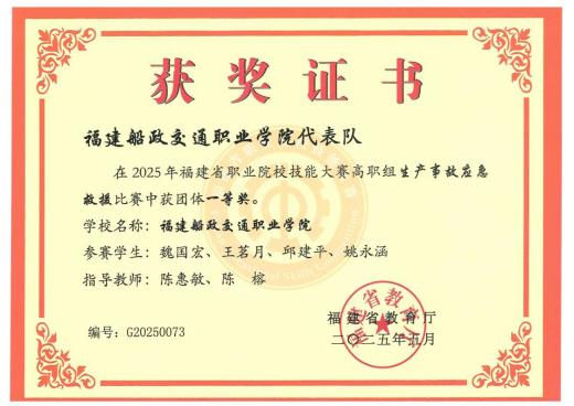 應(yīng)急救援技術(shù)專(zhuān)業(yè)學(xué)生參加國(guó)家和省級(jí)救援類(lèi)競(jìng)賽部分獲獎(jiǎng)證書(shū)