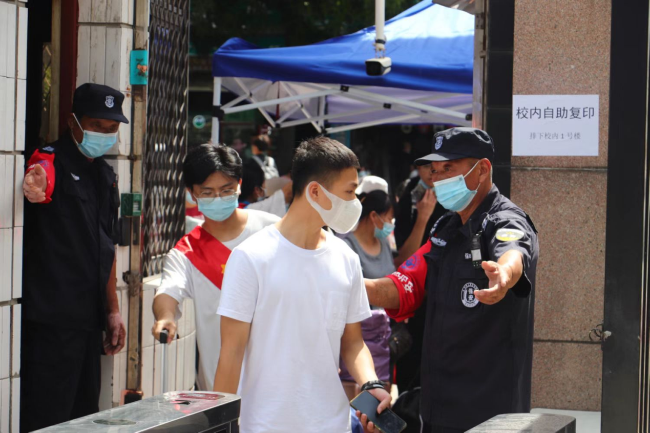 二、明確任務,落實責任。安全保衛(wèi)處制定了《關于新生報到日車輛管控的通知》,迎新安保工作以數(shù)字迎新系統(tǒng)為依托,充分利用數(shù)據(jù)可視化技術,精準把控新生報到峰值時段,靈活調(diào)配保安隊員疏導人流;劃片劃點堅守在各自的崗位上,安排保安隊員指示機動車輛按規(guī)定路線行駛,停放指定區(qū)域,保障校內(nèi)交通順暢、停車有序;安排保衛(wèi)干部專人負責,加強校園內(nèi)巡邏,取締各種違規(guī)攤點,禁止各類推銷行為;在校園內(nèi)重點位置張貼新生報到示意圖,并安排學生志愿者進行安全提醒,提高安全防范意識,確保迎新工作平安、穩(wěn)定、高效開展。迎新工作中,大家各司其職,做到認識統(tǒng)一、目標統(tǒng)一、行動統(tǒng)一,有條不紊,相互協(xié)調(diào)。