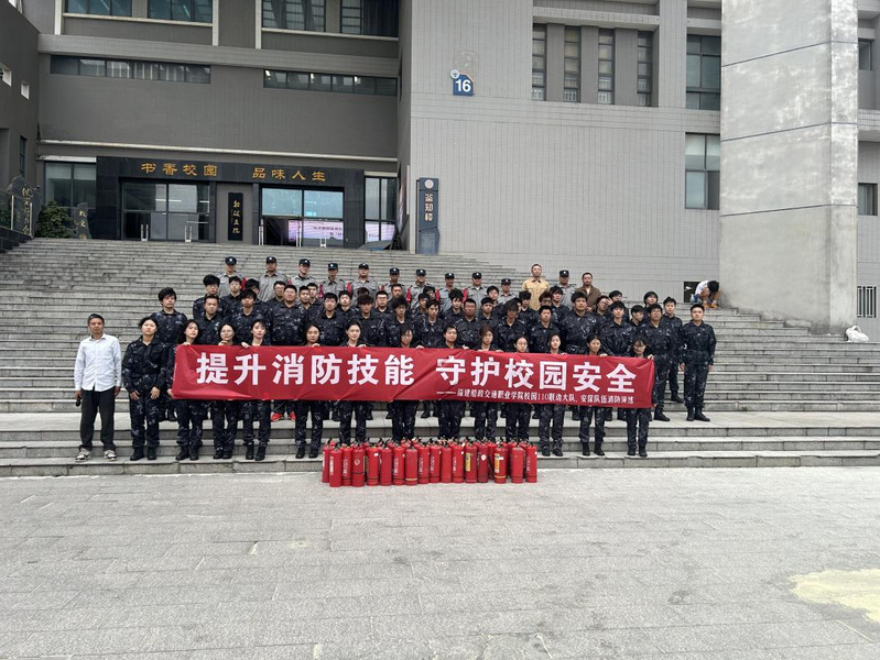 福建船政交通職業(yè)學(xué)院校園110聯(lián)動隊伍、安全保衛(wèi)人員消防演練順利完成