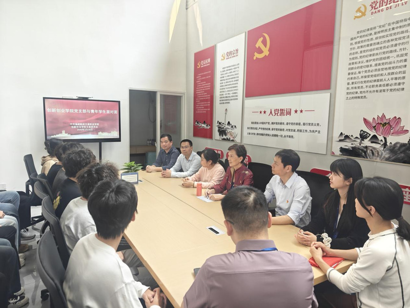 創(chuàng)新創(chuàng)業(yè)學(xué)院黨支部全體黨員與學(xué)生代表圍坐一起,圍繞我校開(kāi)展的創(chuàng)新創(chuàng)業(yè)教學(xué)和實(shí)踐,創(chuàng)新創(chuàng)業(yè)項(xiàng)目培育和各類競(jìng)賽等方面進(jìn)行深入交流。創(chuàng)新創(chuàng)業(yè)學(xué)院黨員認(rèn)真聽(tīng)取學(xué)生代表提出的意見(jiàn)和建議,并詳細(xì)介紹了學(xué)校開(kāi)展的“三階遞進(jìn)” 創(chuàng)新創(chuàng)業(yè)教育體系,交流過(guò)程黨員針對(duì)同學(xué)們關(guān)切的創(chuàng)新創(chuàng)業(yè)實(shí)踐和競(jìng)賽獎(jiǎng)勵(lì)等問(wèn)題逐一進(jìn)行了解答。