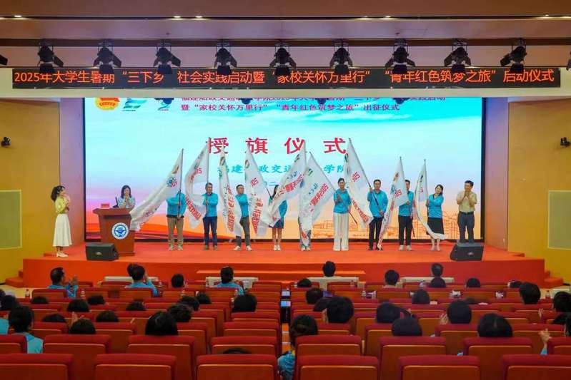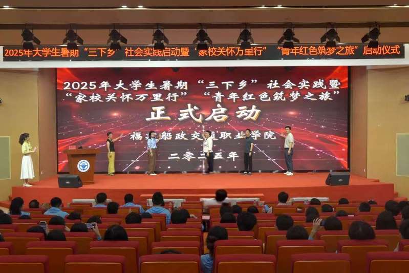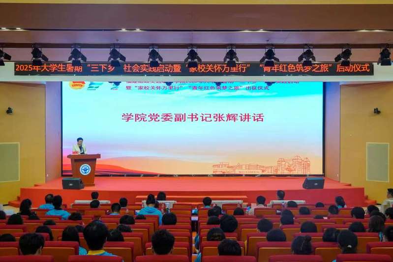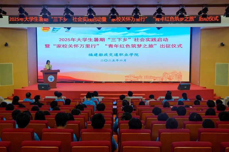 6月25日下午,福建船政交通職業(yè)學(xué)院2025年大學(xué)生暑期“三下鄉(xiāng)”社會(huì)實(shí)踐啟動(dòng)暨 “家校關(guān)懷萬里行”“青年紅色筑夢(mèng)之旅”出征儀式在福船園藝新樓331報(bào)告廳舉行。學(xué)院黨委副書記張輝,黨委宣傳統(tǒng)戰(zhàn)部、學(xué)生工作部、團(tuán)委、創(chuàng)新創(chuàng)業(yè)學(xué)院、馬克思主義學(xué)院等相關(guān)職能部門、二級(jí)學(xué)院,以及參加大學(xué)生暑期“三下鄉(xiāng)”社會(huì)實(shí)踐“家校關(guān)懷萬里行”“青年紅色筑夢(mèng)之旅”的師生代表們參加出征儀式。儀式由學(xué)院團(tuán)委學(xué)生社團(tuán)管理部部長湯曉玲主持。
