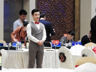 本次大賽由福建省教育廳、福建省人力資源和社會(huì)保障廳、福建省總工會(huì)等共同主辦,著重考查選手的專業(yè)技能、創(chuàng)新能力和應(yīng)變能力?!爸胁椭黝}宴會(huì)設(shè)計(jì)”包括宴會(huì)接待設(shè)計(jì)、宴會(huì)主題設(shè)計(jì)、宴會(huì)擺臺(tái)操作、宴會(huì)臺(tái)面互評(píng)及臺(tái)面英語(yǔ)闡述等環(huán)節(jié)。指導(dǎo)教師張?jiān)娪馈ⅫS超夷備賽充分,在宴會(huì)主題設(shè)計(jì)中拿到高分,同時(shí)選手發(fā)揮穩(wěn)定,最終在21個(gè)隊(duì)伍中排名第8,獲得三等獎(jiǎng)?!拔鞑脱鐣?huì)服務(wù)”賽項(xiàng)包括“西餐宴會(huì)擺臺(tái)“、”西餐服務(wù)“、“英語(yǔ)臺(tái)面介紹”和“西餐服務(wù)”四個(gè)環(huán)節(jié)。在教師阮凌、杜志秀指導(dǎo)團(tuán)隊(duì)的培育下,我系學(xué)生在臺(tái)面設(shè)計(jì)上精挑細(xì)琢,宴會(huì)擺臺(tái)中精準(zhǔn)優(yōu)雅,英語(yǔ)介紹上標(biāo)準(zhǔn)流利,西餐服務(wù)上熱情周到,同時(shí)自創(chuàng)雞尾酒獨(dú)具匠心,最終勇奪一等獎(jiǎng)。