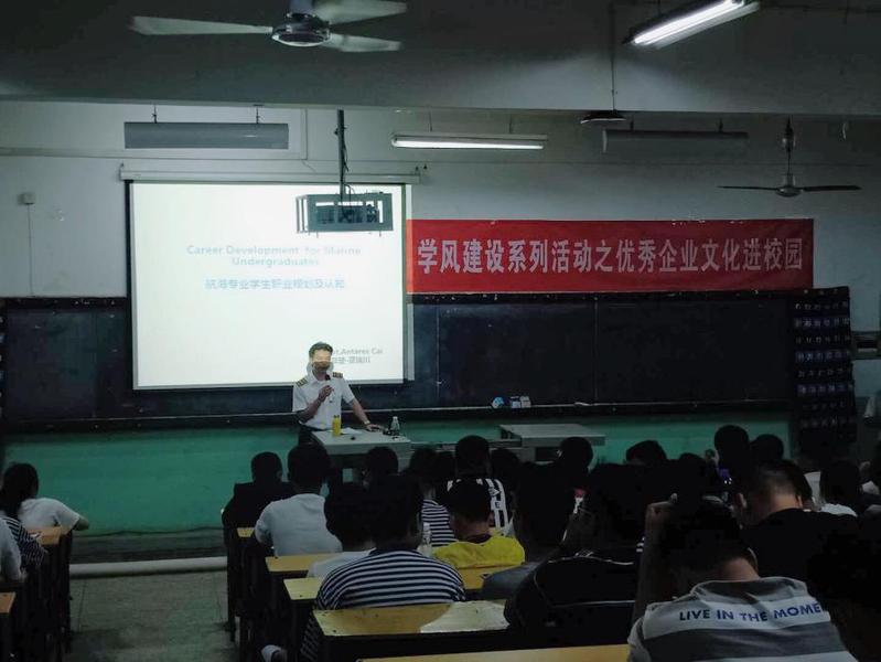 會(huì)上,蔡瑞川學(xué)長(zhǎng)從自身經(jīng)歷講起,為大家詳細(xì)說(shuō)明了船員的工作情況,向大家分享自己的就業(yè)經(jīng)驗(yàn),并幫助同學(xué)們更直觀地了解當(dāng)?shù)木蜆I(yè)方向及趨勢(shì),告誡同學(xué)們要慎重選擇,早做規(guī)劃。同時(shí),通過(guò)展示一些船上生活的片段,令同學(xué)們對(duì)船員船上生活有更加清楚的認(rèn)識(shí),而生活中的點(diǎn)點(diǎn)滴滴也使同學(xué)們對(duì)船上的生活更加向往。