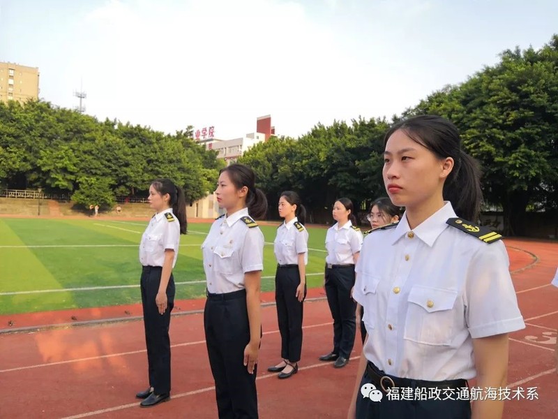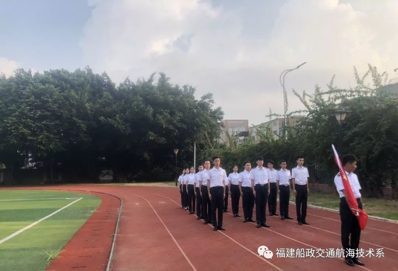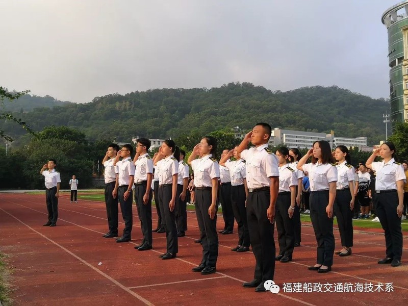 早晨7點,航海技術系為新生們上了一堂特殊的愛國教育課——升旗儀式。