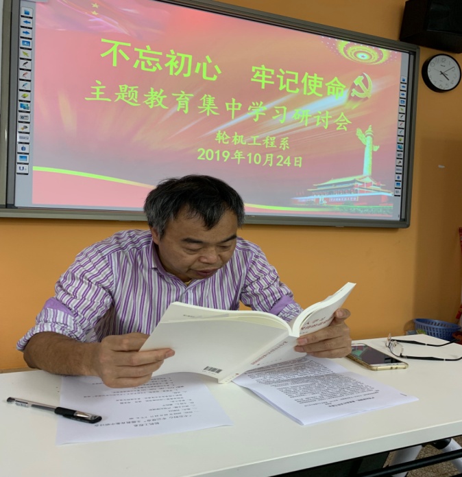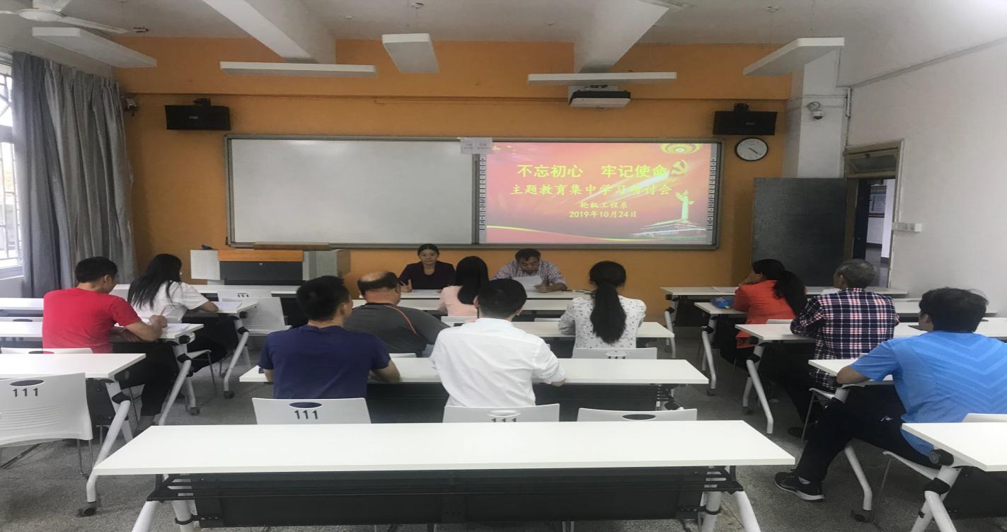 2019年10月24日下午4:00,輪機(jī)工程系黨總支在南區(qū)31#111室召開“不忘初心、牢記使命”主題教育第五次集中學(xué)習(xí)研討會,系總支書記蔡昀平主持會議,全體黨員參加學(xué)習(xí)。