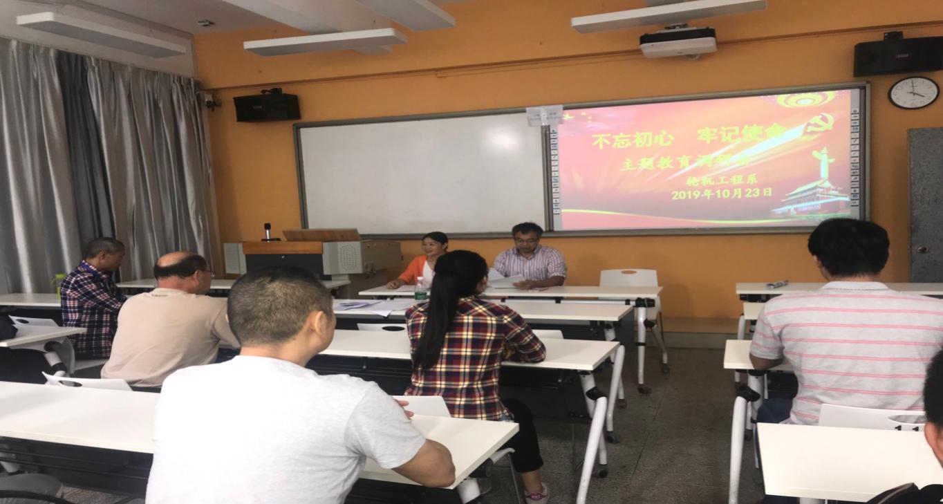 為深入推進(jìn)“不忘初心、牢記使命”主題教育活動,2019年10月23日下午3:00,輪機(jī)工程系在31#111教室召開“不忘初心、牢記使命”主題教育調(diào)查研研究、檢視問題征求意見座談會。系總支書記蔡昀平主持會議,系主任陳清彬、各輔導(dǎo)員、各教研室主任和教師代表20余人參會。