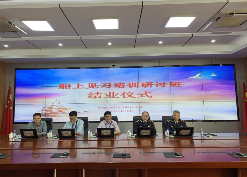 2021年4月2日,船員船上見習(xí)培訓(xùn)業(yè)務(wù)研討班結(jié)業(yè)儀式在福建船政交通職業(yè)學(xué)院舉行。福建船政交通職業(yè)學(xué)院高汝武副院長、航海學(xué)院李翼副院長、李道科副院長、福州海事局阮召彬副局長及相關(guān)業(yè)務(wù)部門領(lǐng)導(dǎo)出席儀式并為學(xué)員頒發(fā)結(jié)業(yè)證書。福州、平潭、寧德等地區(qū)28家航運(yùn)公司和海員外派機(jī)構(gòu)、53名學(xué)員參加結(jié)業(yè)儀式。