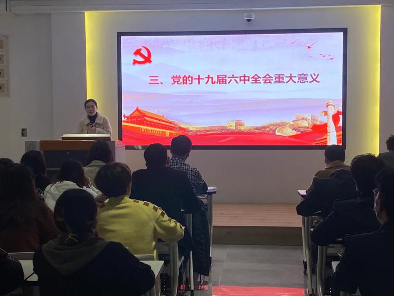 陳艷紅副院長(zhǎng)從“準(zhǔn)確理解黨的十九屆六中全會(huì)歷史背景”、“全面把握黨的十九屆六中全會(huì)核心要義”和“深刻領(lǐng)會(huì)黨的十九屆六中全會(huì)重大意義”等三個(gè)方面,對(duì)十九屆六中全會(huì)進(jìn)行了一個(gè)系統(tǒng)的回顧,并重點(diǎn)解讀“一個(gè)報(bào)告”、“兩個(gè)決議”和“一個(gè)說(shuō)明”等內(nèi)容。同時(shí),結(jié)合省第十一次黨代會(huì)精神與學(xué)院實(shí)際,對(duì)現(xiàn)階段的我們國(guó)家職業(yè)教育存在的機(jī)遇與挑戰(zhàn)進(jìn)行了分析,提出了五個(gè)“抓住”。并指出目前正值學(xué)院“雙高”建設(shè)的重要時(shí)期,如何把握其中的機(jī)遇與挑戰(zhàn),推動(dòng)職業(yè)教育高質(zhì)量發(fā)展,需要各位黨員同志勇于創(chuàng)新,敢于擔(dān)當(dāng),積極奉獻(xiàn)。