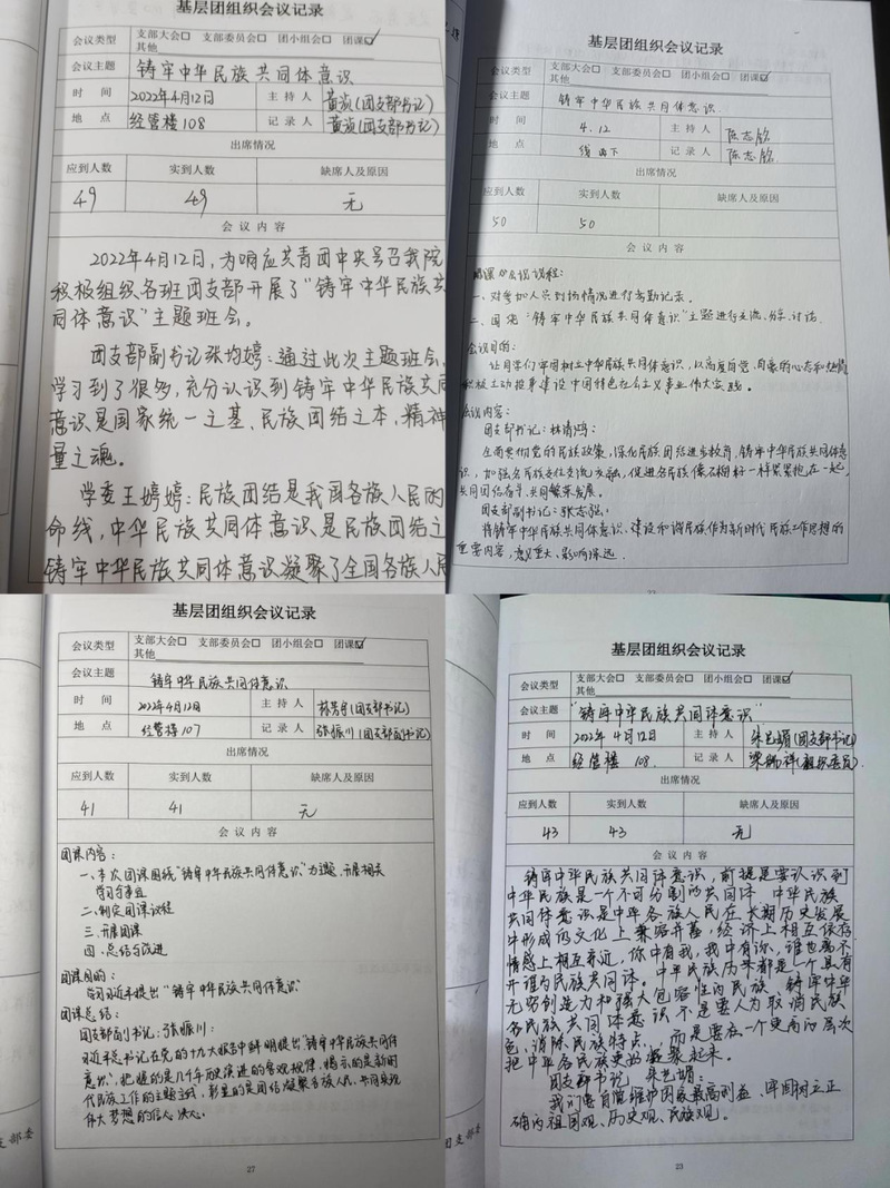 2022年4月12日,為響應共青團中央號召我院積極組織各班團支部開展了“鑄牢中華民族共同體意識”主題團日活動。
