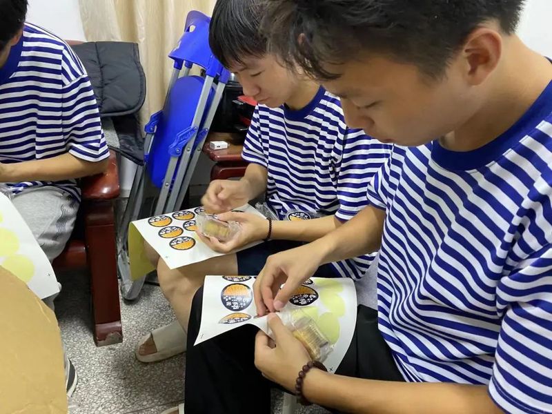 航海學院同學為月餅“穿新衣”