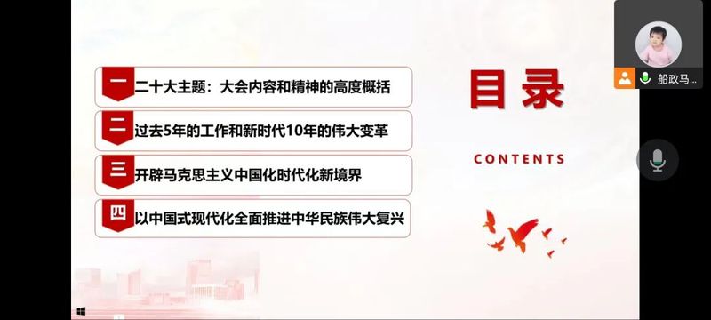 黃其連老師從大會(huì)主題、深刻領(lǐng)會(huì)黨的二十大的重大意義、新時(shí)代十年偉大變革等方面給同學(xué)們分享了黨的二十大精神的學(xué)習(xí)體會(huì)和理解。宣講報(bào)告主題鮮明、內(nèi)容豐富,緊緊圍繞黨的二十大報(bào)告主題、新時(shí)代發(fā)展主線、教育現(xiàn)代化趨勢(shì)等主要內(nèi)容,以講解和互動(dòng)相結(jié)合的方式展開(kāi)宣講,講解條理清晰、深入淺出,讓同學(xué)們?cè)谏鷦?dòng)的講解中加深對(duì)黨的二十大精神的理解。