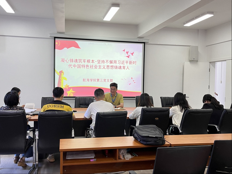 航海學(xué)院第三黨支部于2023年5月17日在校友樓307召開主題教育學(xué)習(xí),研討專題——凝心鑄魂筑牢根本-堅持不懈用習(xí)近平新時代中國特色社會主義思想鑄魂育人,專題主要發(fā)言人為支部書記李翼。主要發(fā)言學(xué)習(xí)內(nèi)容為堅定不移高舉中國特色社會主義偉大旗幟。黨和國家的長期實踐充分證明,只有社會主義才能救中國,只有中國特色社會主義才能發(fā)展中國。只有高舉中國特色社會主義偉大旗幟,才能團(tuán)結(jié)帶領(lǐng)全黨全國各族人民全面建成小康社會,建成富強(qiáng)民主文明和諧的社會主義現(xiàn)代化國家,贏得中國人民和中華民族更加幸福美好的未來。