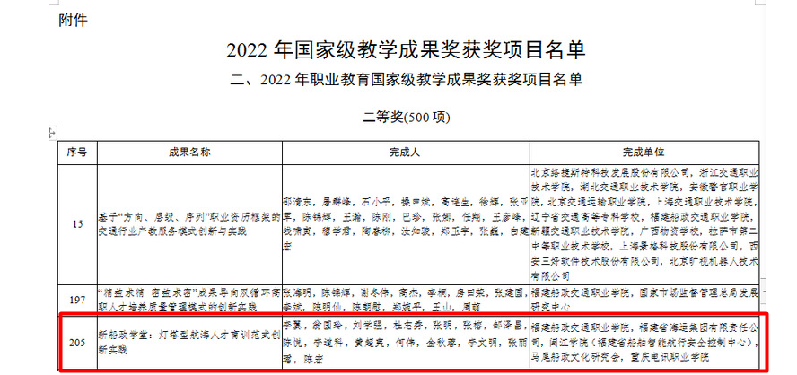 724日,教育部公布了2022年國家級教學(xué)成果獎獲獎項目名單。由我校航海學(xué)院主持申報的《新船政學(xué)堂:燈塔型航海人才育訓(xùn)范式創(chuàng)新實踐》教學(xué)成果獲得二等獎。