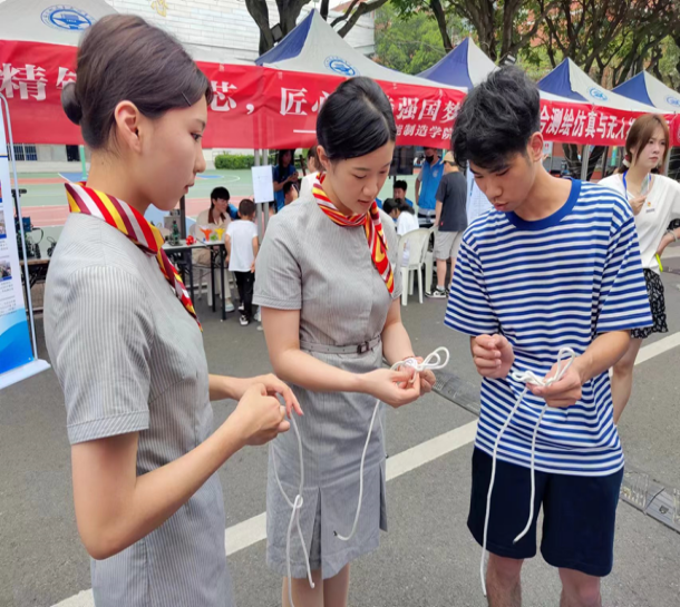 在活動(dòng)現(xiàn)場(chǎng),我院學(xué)子積極向大家展示繩結(jié)教學(xué),講解各種繩結(jié)的編法以及用處,真正做到了知行合一,學(xué)有所用。