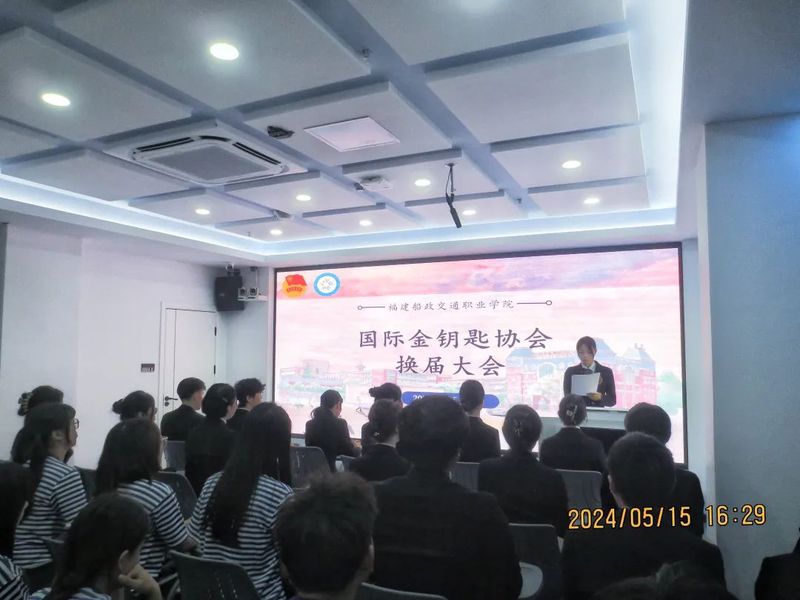 2024年5月15日下午,國(guó)際金鑰匙協(xié)會(huì)在中式五高郵輪訓(xùn)練中心二期進(jìn)行社團(tuán)換屆大會(huì)。此次參與大會(huì)的相關(guān)人員有國(guó)際金鑰匙協(xié)會(huì)指導(dǎo)教師黃娜琴老師,22級(jí)以及23級(jí)全體金鑰匙協(xié)會(huì)成員。