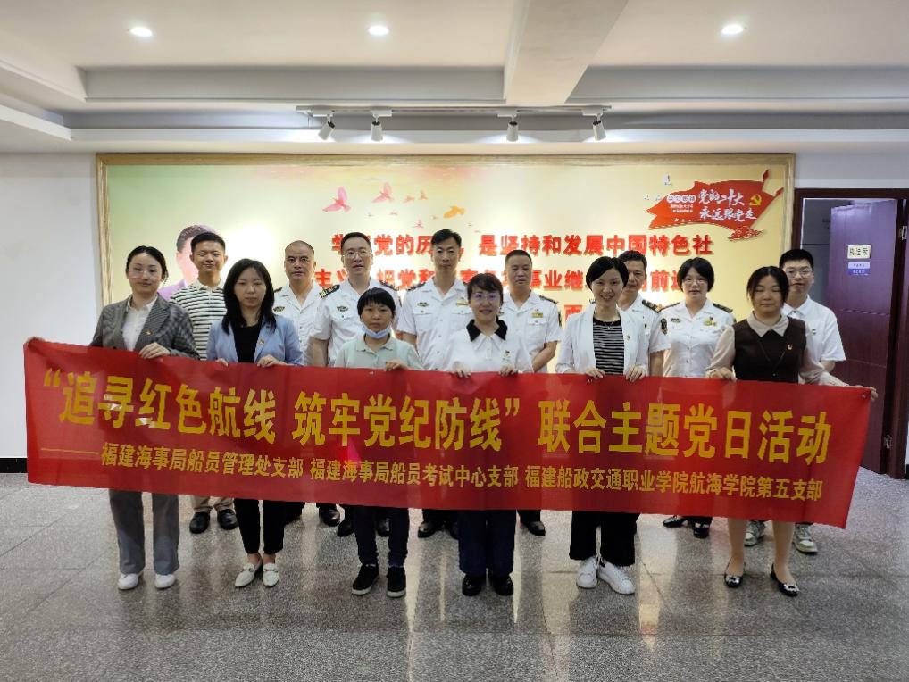 為認(rèn)真貫徹落實(shí)黨紀(jì)學(xué)習(xí)教育要求,引導(dǎo)支部黨員進(jìn)一步牢記黨員意識(shí)、嚴(yán)守黨紀(jì)黨規(guī)、強(qiáng)化黨員責(zé)任、發(fā)揮黨員作用,5月22日下午,我院第五支部與福建海事局船員管理處、船考中心聯(lián)合開展“追尋紅色航線,筑牢黨紀(jì)防線”黨紀(jì)學(xué)習(xí)教育主題黨日活動(dòng)。
