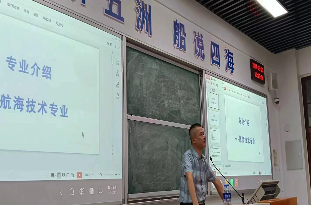 9 月 23 日晚上,32# 航東大教室座無虛席,一場別開生面的新生航海技術(shù)專業(yè)介紹會在此隆重舉行。本次介紹會的介紹人是張厚釘老師和福建省海運(yùn)集團(tuán)中平船舶管理有限公司綜合辦綜合主管于建晨主管。