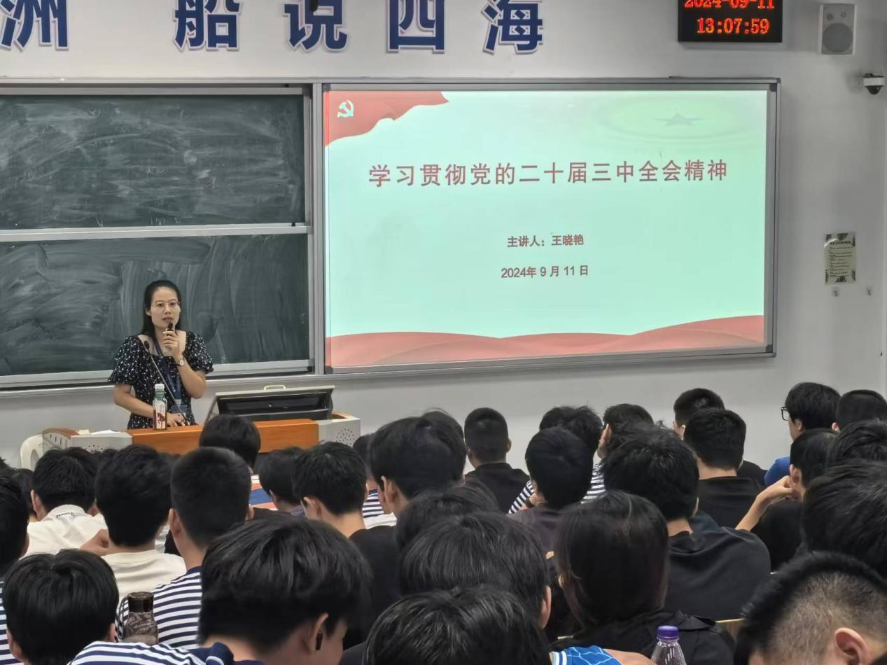 為深入學(xué)習(xí)黨的二十屆三中全會精神,激發(fā)廣大青年學(xué)生的愛國熱情與奮斗精神,9月11日,航海學(xué)院第一黨支部書記王曉艷老師在航東大教室開展了黨的二十屆三中全會精神的宣講活動,2022級航海技術(shù)、輪機(jī)工程技術(shù)專業(yè)學(xué)生代表共一百余人參加了講座。