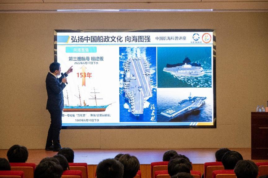 為弘揚(yáng)中國船政文化,增強(qiáng)青年學(xué)子的海洋意識與愛國情懷,2025年2月27日,中國航??破沾笫沽殖魃W臨我校航海學(xué)院,開展了一場主題為“弘揚(yáng)中國船政文化 向海圖強(qiáng)”的科普講座。