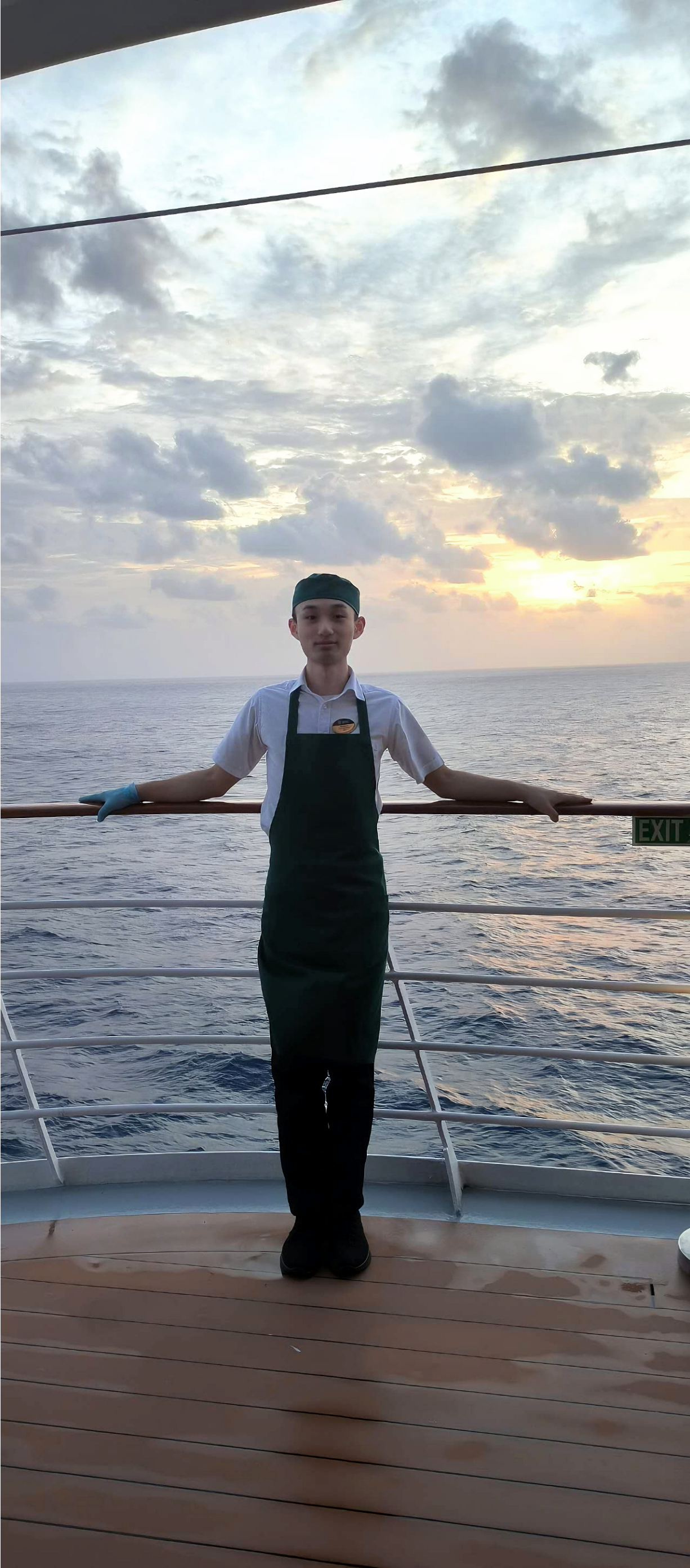 今年的春節(jié),全船只有我一個人在廚房切火腿,我盯著手機里家人的照片發(fā)呆。突然有客人按鈴要冰酒,我攥著托盤的手直發(fā)抖,冰塊嘩啦啦掉在鞋上。那天晚上我蜷在儲物柜后啃冷掉的面包,聽見主廚哼著意大利歌曲經(jīng)過,突然想起老師說的:“在海上漂著的人,眼淚比海水咸。