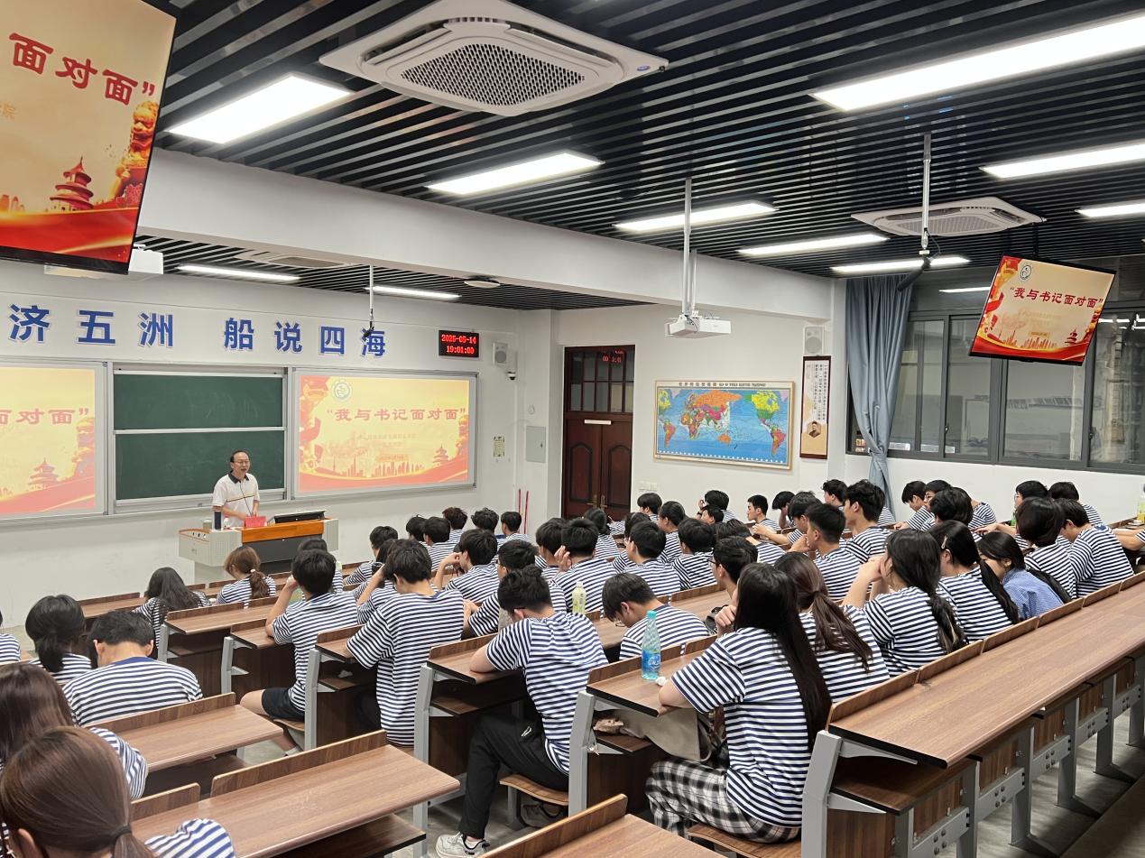 在交流接近尾聲時,江書記向同學(xué)們解讀了學(xué)院的黨建與事業(yè)發(fā)展規(guī)劃。他表示,學(xué)院將聚焦人才培養(yǎng)質(zhì)量提升,深化“教師、教材、教法”改革,建設(shè)“智慧航海”教學(xué)平臺,引入企業(yè)標(biāo)準(zhǔn)優(yōu)化課程體系。他鼓勵同學(xué)們將個人理想與學(xué)院發(fā)展緊密結(jié)合,勇挑重?fù)?dān),在實現(xiàn)個人價值的同時為學(xué)院發(fā)展貢獻(xiàn)力量。