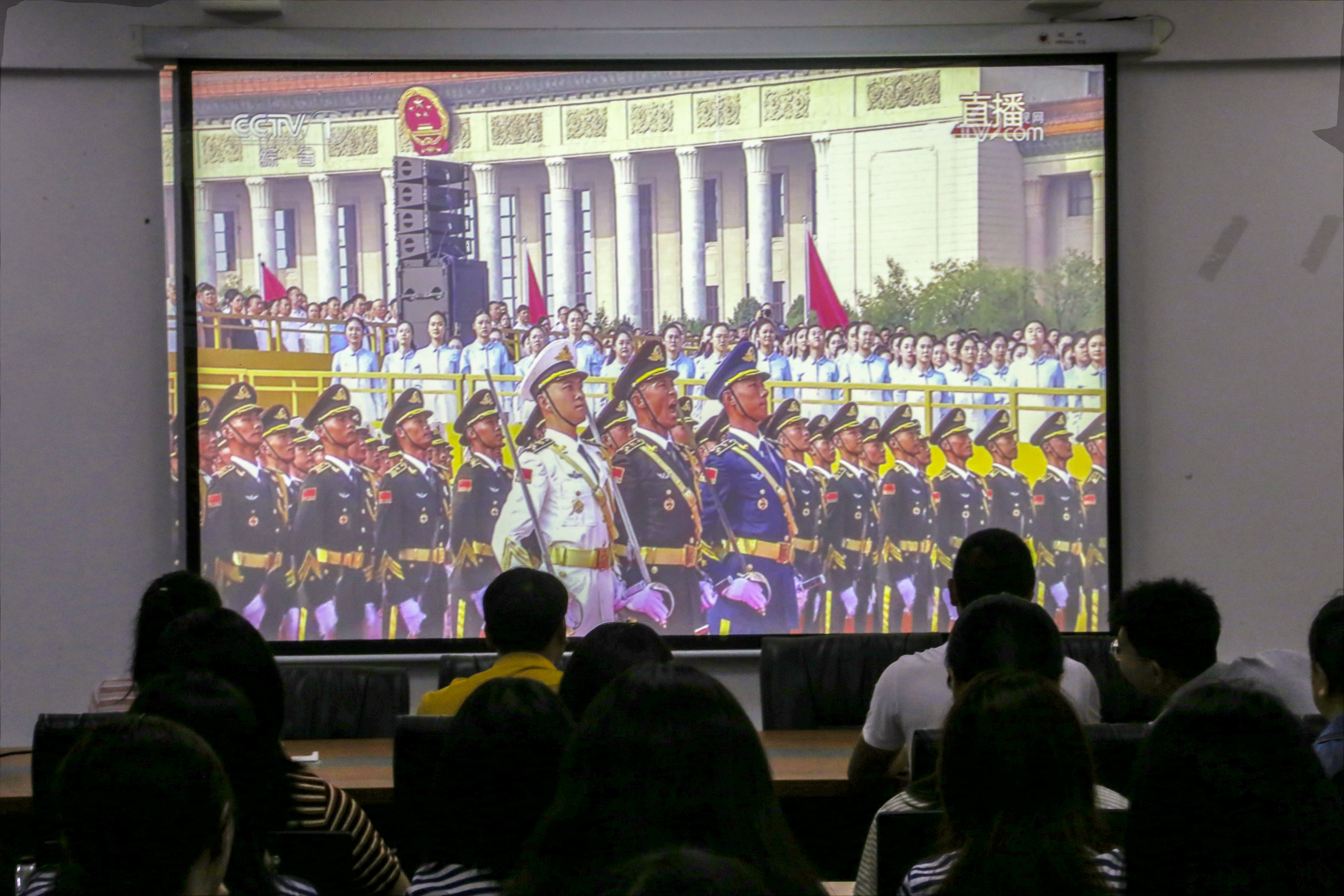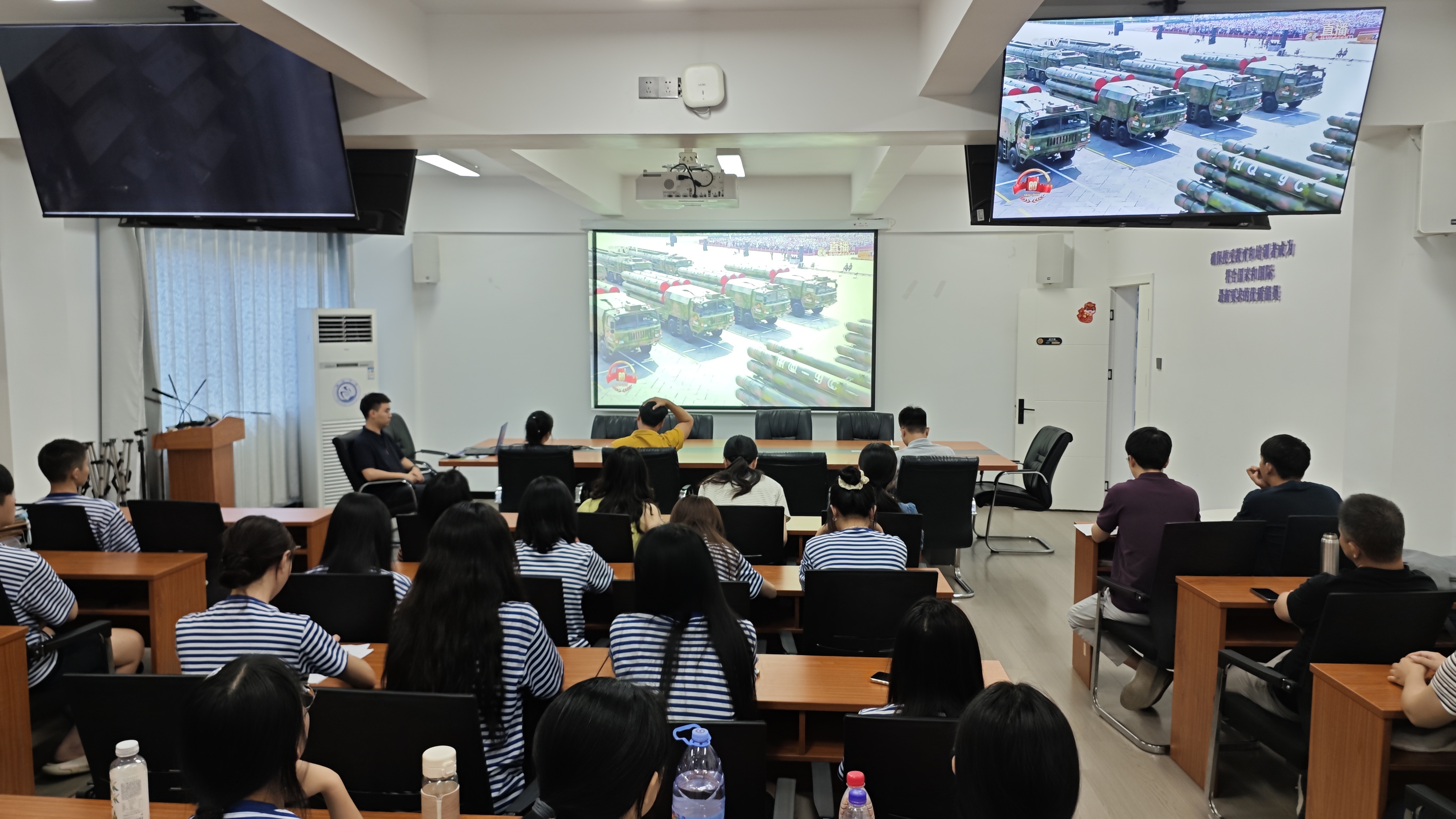 上午9時,航海學院的師生們便早早地齊聚在學院會議室、教室等場所。他們的臉上洋溢著期待與興奮,眼神中滿是對祖國的熱愛與敬意,靜靜地等待著閱兵式的開場。