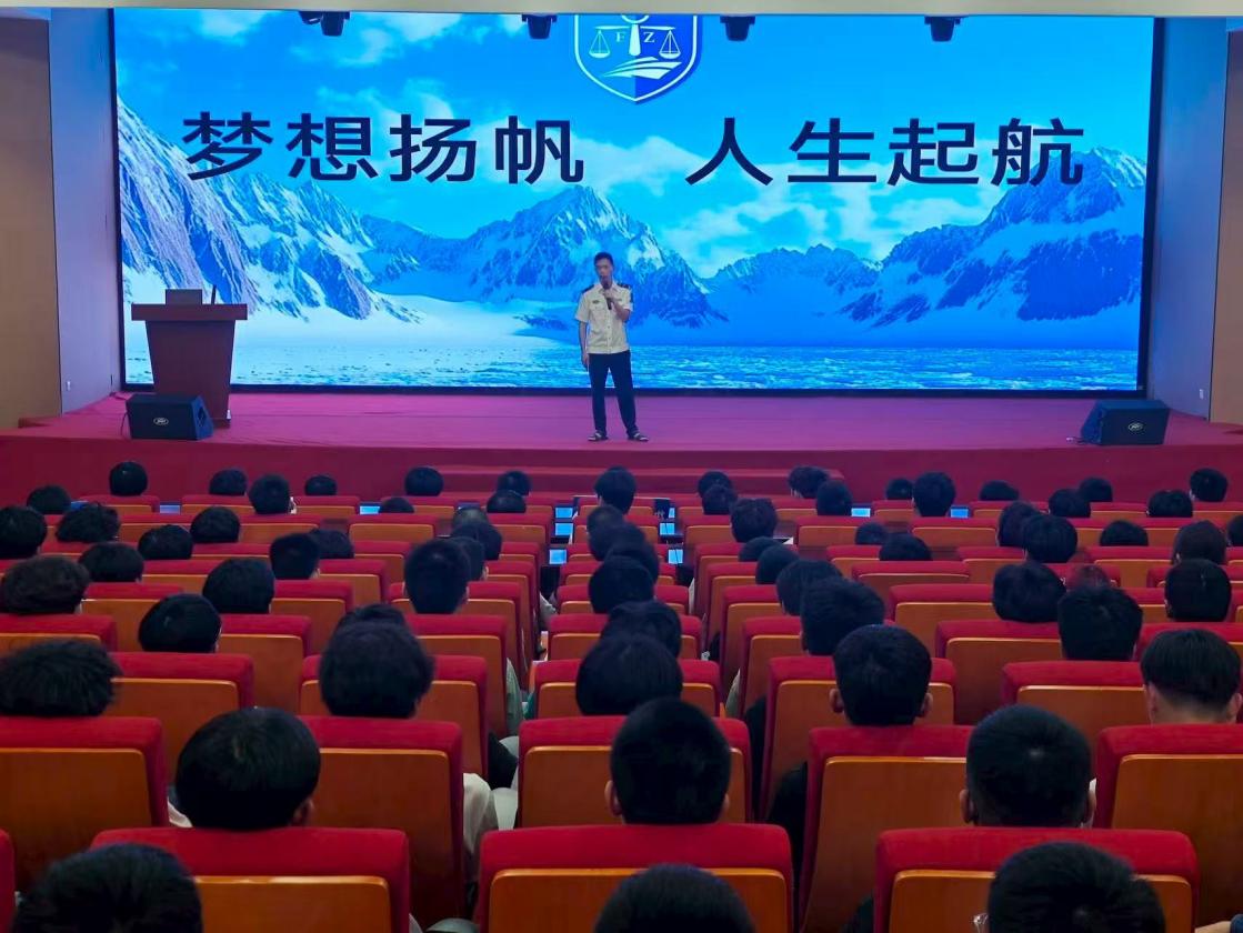 2025年9月14日下午,福建船政交通職業(yè)學(xué)院南區(qū)藝新樓331教室內(nèi),航海技術(shù)專業(yè)2025級(jí)全體新生齊聚一堂,聆聽(tīng)了一場(chǎng)精彩的專業(yè)介紹。本次專業(yè)介紹特邀福州海事局通航管理處三級(jí)主辦、中級(jí)海事調(diào)查官陳鈴先生擔(dān)任主講嘉賓。