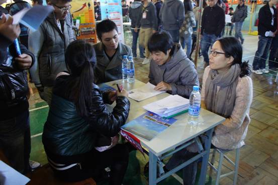 招聘會從早上九時一直持續(xù)到中午十二時,整個招聘過程緊張而有序地進行。本次共有30余家企業(yè)參會,吸引了近四百多名學(xué)生的參加,為同學(xué)們提供了近280個工作崗位。