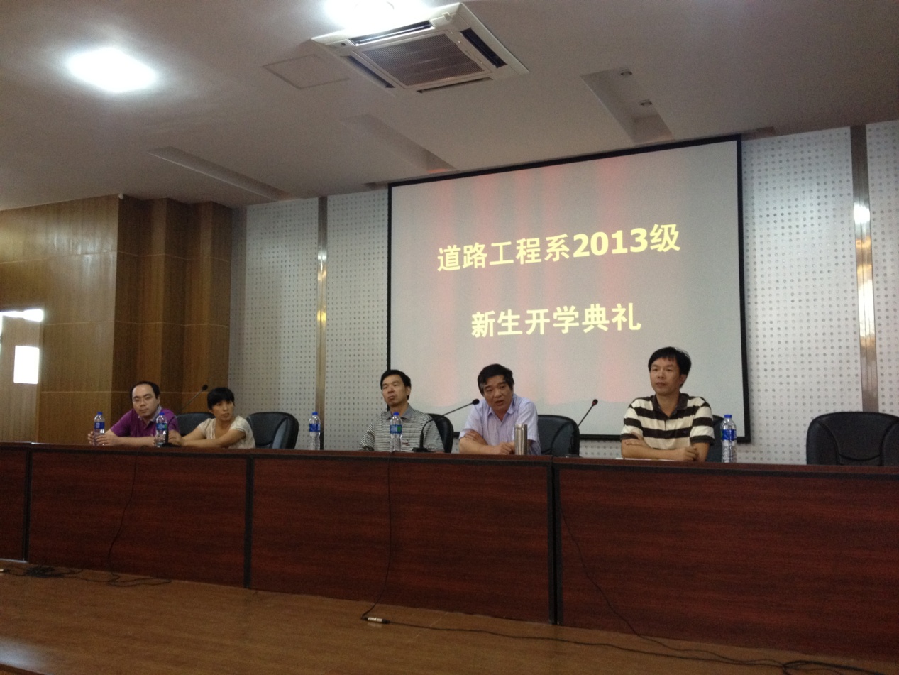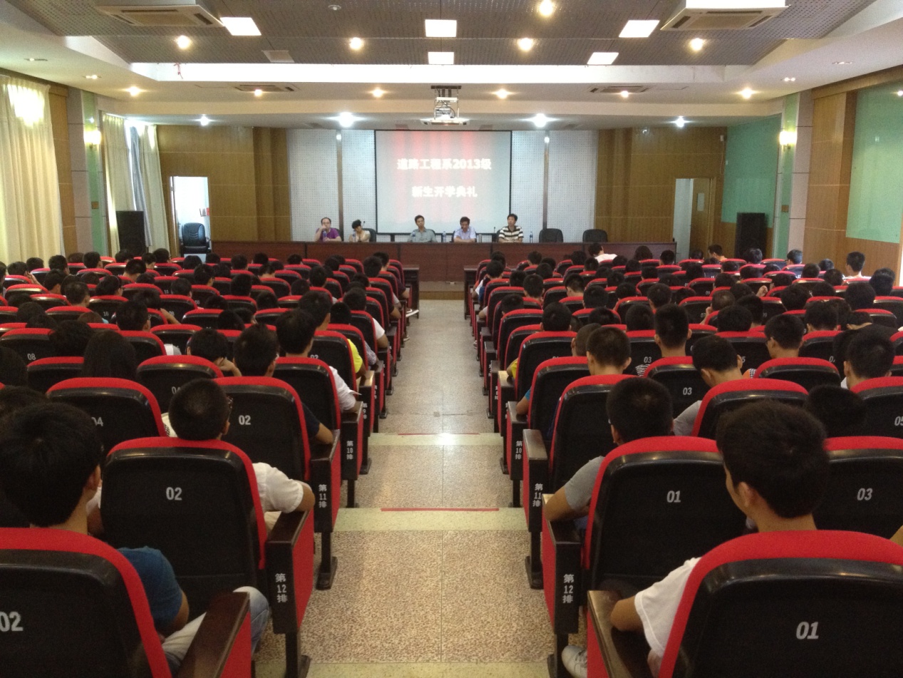 2013年9月12日下午4:30,道路工程系2013級新生開學(xué)典禮在一號樓六樓學(xué)術(shù)報告廳召開。道路工程系書記王心金、系主任周志堅、俞素平副教授、陳勇鋒老師、陳艷瓊老師、全體輔導(dǎo)員以及300多名學(xué)生參加了會議。