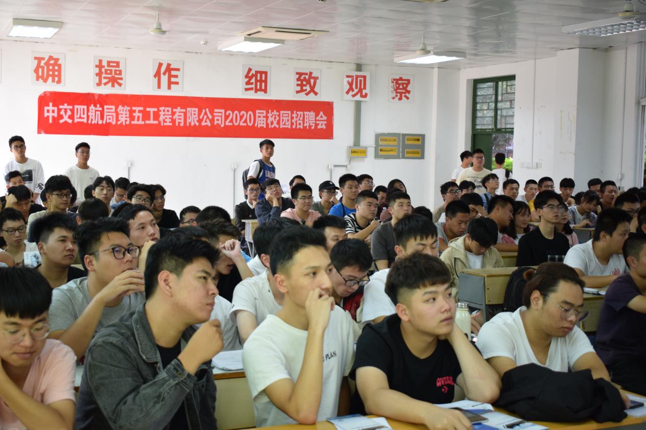 20191016日下午,中交四航局第五工程有限公司校園專場招聘會在高蓋山校區(qū)科技路102教室順利舉辦,公司林經(jīng)理以及200余名道工系應(yīng)屆畢業(yè)生參加了此次招聘會。
