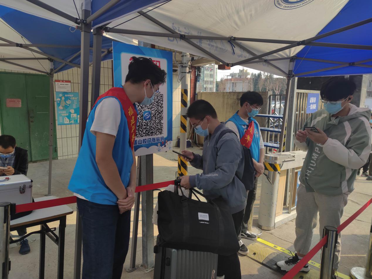 “同學(xué)們,歡迎返校!”在志愿服務(wù)活動(dòng)過(guò)程中,土木工程學(xué)院黨組織認(rèn)真貫徹學(xué)校的返校工作安排和方便返校學(xué)生的宗旨,采取了一系列有效措施:帶領(lǐng)學(xué)生黨員和入黨積極分子耐心細(xì)致地引導(dǎo)返校學(xué)生按照預(yù)定流程掃碼、測(cè)溫和消毒。在高蓋山校區(qū)大門(mén)口、圖書(shū)館前報(bào)到處,都能看到黨員志愿者熱情地指引并幫助返校學(xué)生,耐心地為每位學(xué)生服務(wù),他們嚴(yán)謹(jǐn)?shù)剡M(jìn)行測(cè)體溫、填寫(xiě)表格、確認(rèn)宿舍入住碼,盡心盡責(zé)地做好每一件工作,確保返校工作安全、有序進(jìn)行。
