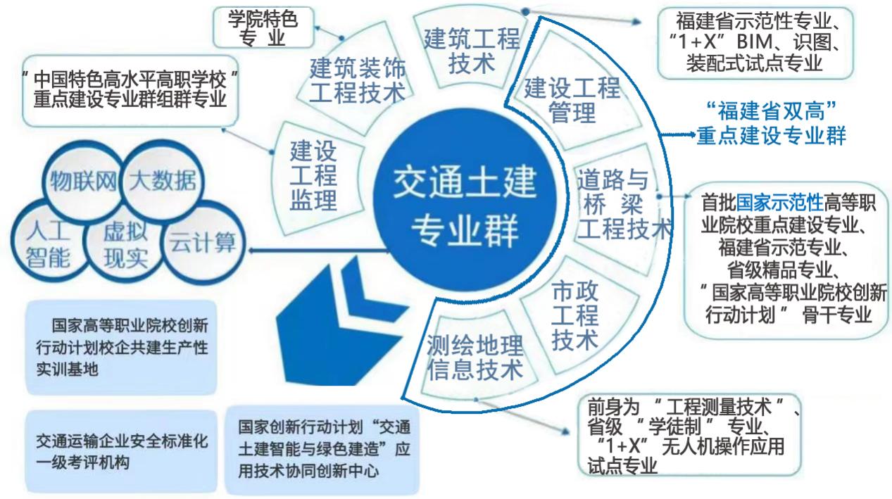 目前,土木工程學(xué)院招生的專業(yè)有道路與橋梁工程技術(shù)、市政工程技術(shù)、建設(shè)工程監(jiān)理、測(cè)繪與地理信息技術(shù)、建筑工程技術(shù)、建設(shè)工程管理、建筑裝飾工程技術(shù)等7個(gè)專業(yè)。其中,道路與橋梁工程技術(shù)是首批國家示范性高等職業(yè)院校建設(shè)計(jì)劃中央財(cái)政重點(diǎn)支持建設(shè)的專業(yè)(簡(jiǎn)稱“國家示范校重點(diǎn)專業(yè)”)、國家創(chuàng)新發(fā)展行動(dòng)計(jì)劃骨干專業(yè)、福建省示范專業(yè)、福建省精品專業(yè),“福建省雙高”重點(diǎn)建設(shè)專業(yè)群的核心專業(yè),2017年通過IEET國際認(rèn)證;建設(shè)工程監(jiān)理專業(yè)是“中國特色高水平高職學(xué)校與高水平專業(yè)建設(shè)計(jì)劃”(簡(jiǎn)稱“國家雙高”)高水平專業(yè)群的組群專業(yè);市政工程技術(shù)、測(cè)繪與地理信息技術(shù)、建設(shè)工程管理專業(yè)是“福建省雙高”重點(diǎn)建設(shè)專業(yè)群(道路與橋梁工程技術(shù)專業(yè)群)的組群專業(yè);建筑工程技術(shù)是福建省示范專業(yè);建筑裝飾工程技術(shù)專業(yè)為學(xué)校特色專業(yè)。