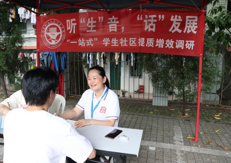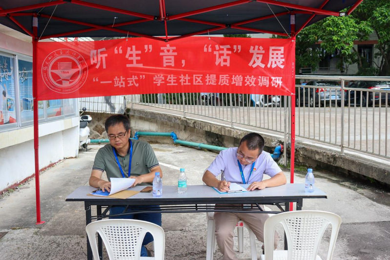為深入開(kāi)展學(xué)習(xí)貫徹習(xí)近平新時(shí)代中國(guó)特色社會(huì)主義思想主題教育,全面推進(jìn)“一站式”學(xué)生社區(qū)提質(zhì)增效,6月6日—6月8日,土木工程學(xué)院黨總支書記高杰同志、黨總支副書記任穎卿同志攜調(diào)研團(tuán)隊(duì)成員在福道園5號(hào)樓、3號(hào)樓前開(kāi)展了聽(tīng)“生”音,“話”發(fā)展“一站式”學(xué)生社區(qū)提質(zhì)增效調(diào)研,調(diào)研圍繞黨建引領(lǐng)、三全育人、平安校園、智慧校園四個(gè)方面展開(kāi)。