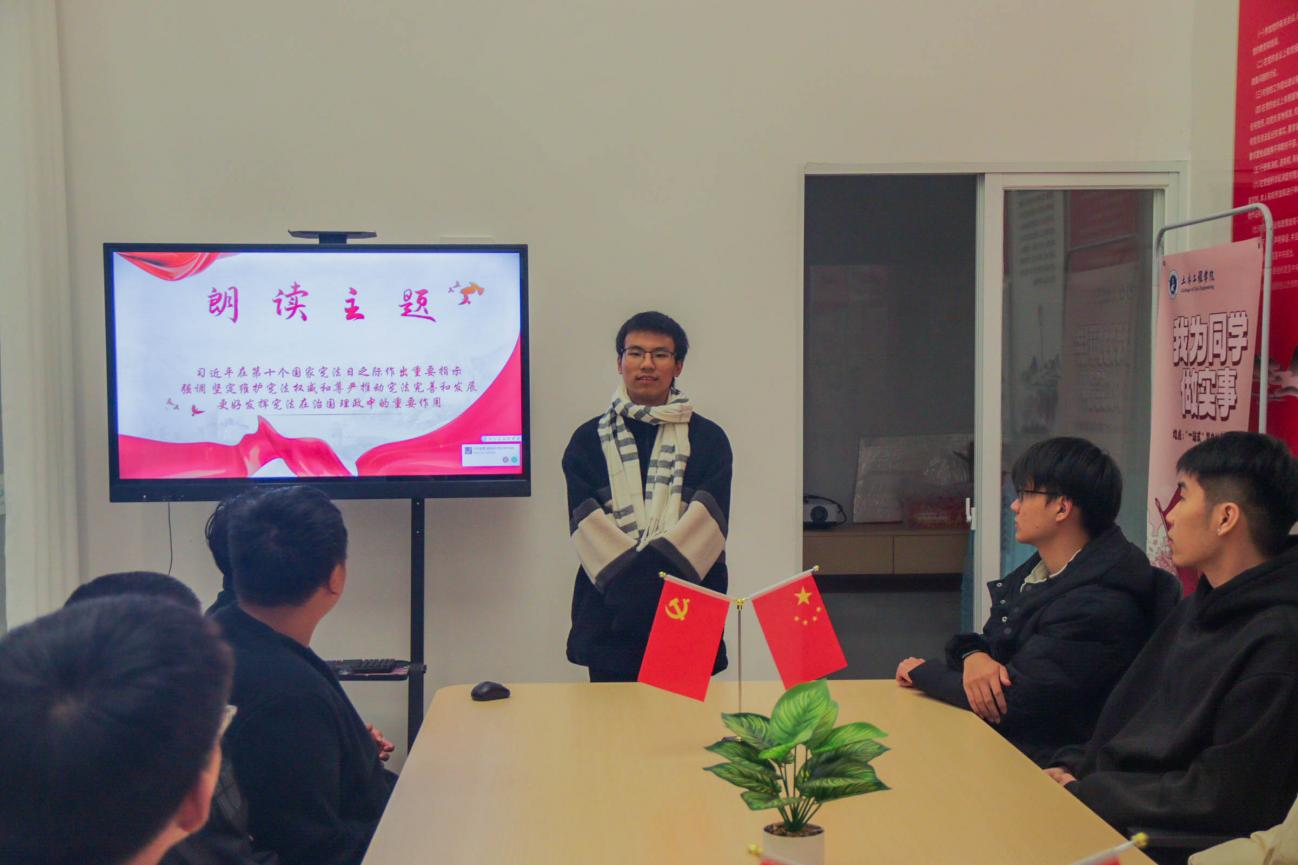 分享會上,23級工程測量技術(shù)(3+2)1班團支部書記謝世煒,通過朗讀習(xí)近平在第十個國家憲法日之際作出重要指示強調(diào)的重要文章,引導(dǎo)同學(xué)們做到堅定維護憲法權(quán)威和尊嚴(yán)推動憲法完善和發(fā)展,更好發(fā)揮憲法在治國理政中的重要作用。
