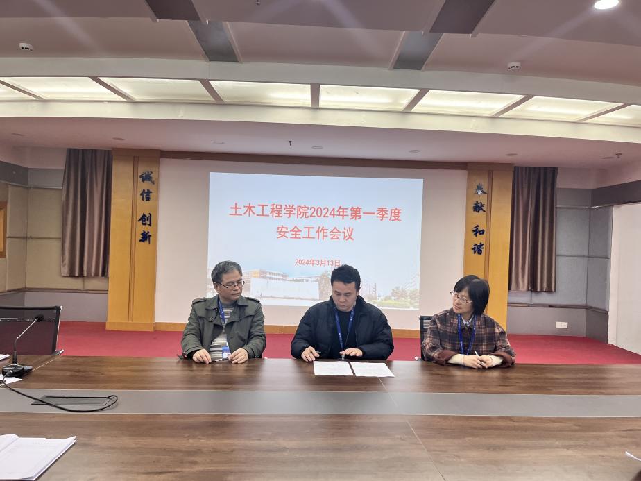 2024年3月13日下午,土木工程學院在創(chuàng)新樓1007會議室,召開了學院2024年第一季度安全工作會議,第一時間傳達學習上級有關文件和會議精神,分析研判當前學院安全穩(wěn)定工作形勢,對做好下一步安全工作進行部署并簽訂本年度的安全責任書。學院領導班子成員、教研室主任副主任、辦公室人員、全體輔導員及全體實訓中心成員參加了會議,會議由朱明栓副院長主持。