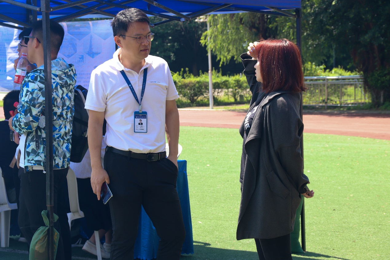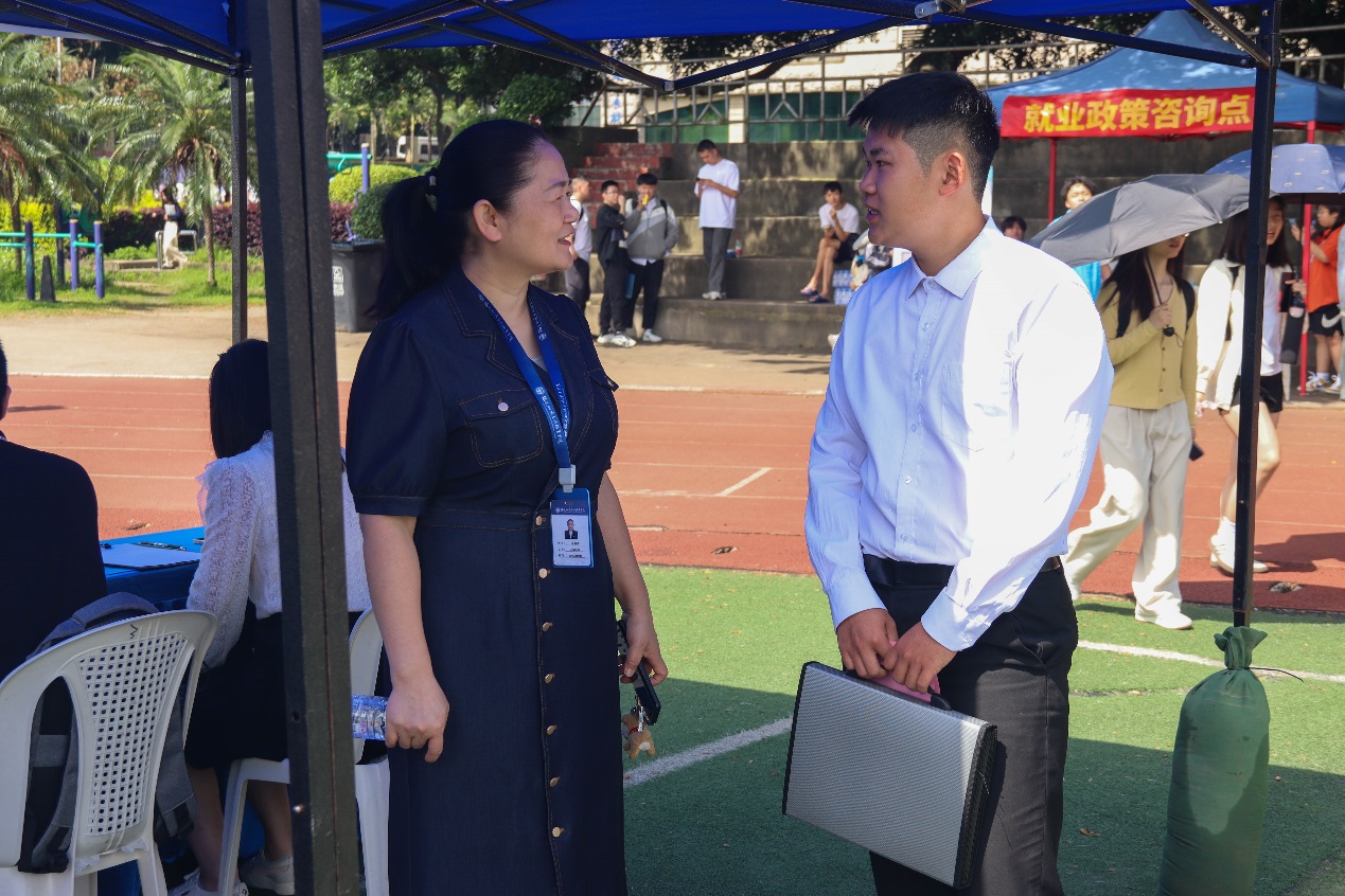 活動現(xiàn)場,學(xué)院領(lǐng)導(dǎo)班子積極與企業(yè)溝通交流,教研室專任教師、畢業(yè)班輔導(dǎo)員和班主任等均在場為學(xué)生答疑解惑,給學(xué)生提供建議和崗位推薦。