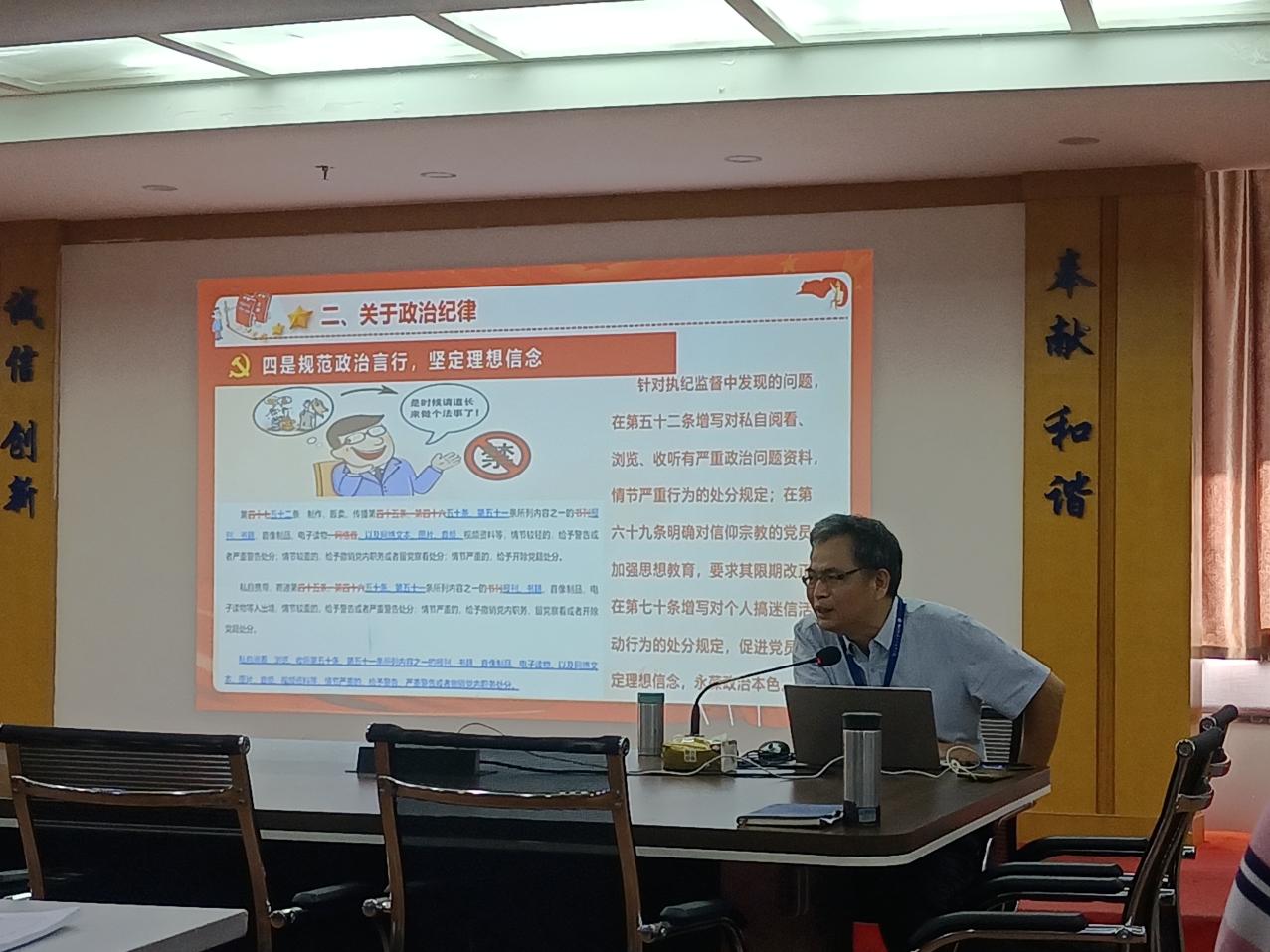 高杰同志從深刻認(rèn)識(shí)《條例》修訂的重要意義、準(zhǔn)確把握《條例》主要內(nèi)容、切實(shí)抓好學(xué)習(xí)《條例》貫徹落實(shí)等三個(gè)方面,同時(shí)結(jié)合典型案例重點(diǎn)對(duì)2023版本《條例》中關(guān)于政治紀(jì)律、組織紀(jì)律、廉潔紀(jì)律、群眾紀(jì)律、工作紀(jì)律和生活紀(jì)律等六個(gè)方面進(jìn)行了全面、系統(tǒng)、深入地講解,為黨員更加準(zhǔn)確理解和掌握《條例》內(nèi)容起到了引領(lǐng)作用。